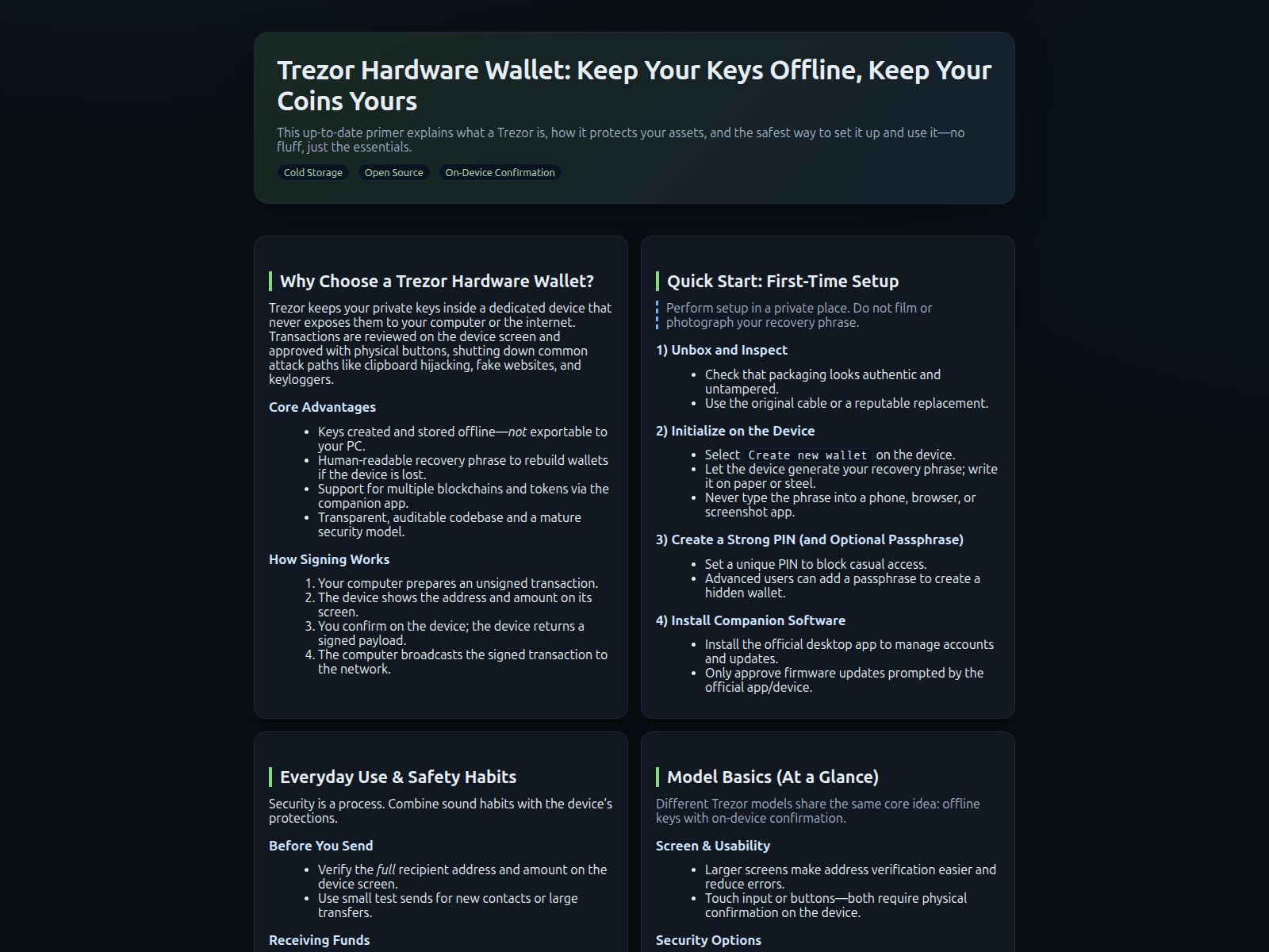 “Trezor Hardware Wallet — Offline Security, On-Chain Freedom”