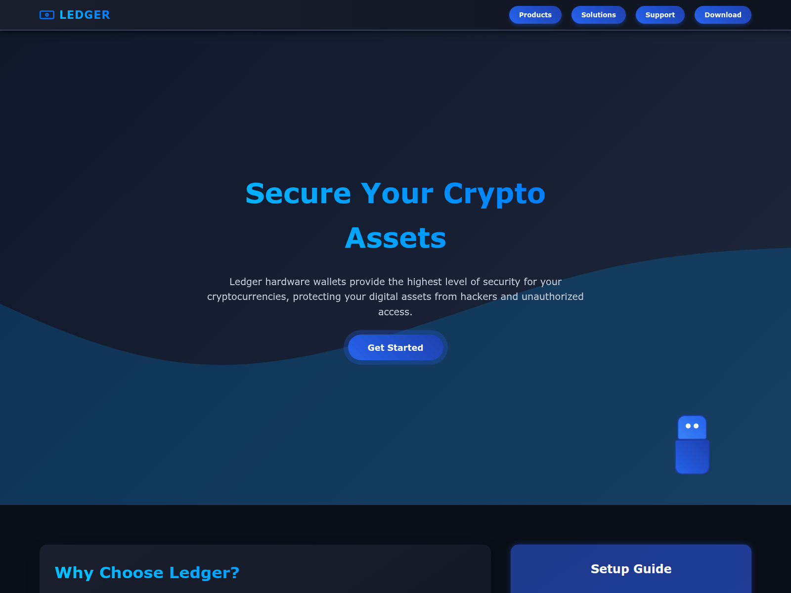 The site displays a page titled “Ledger Start - Secure Your Crypto”, which may be designed to impersonate Ledger.