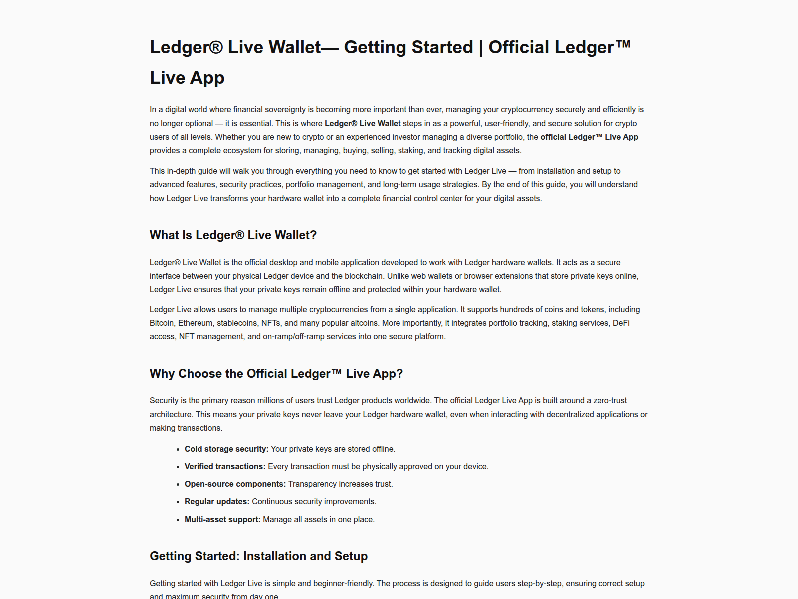The site displays a page titled “Ledger Live Wallet — Getting Started | Official Ledger Live App”.
