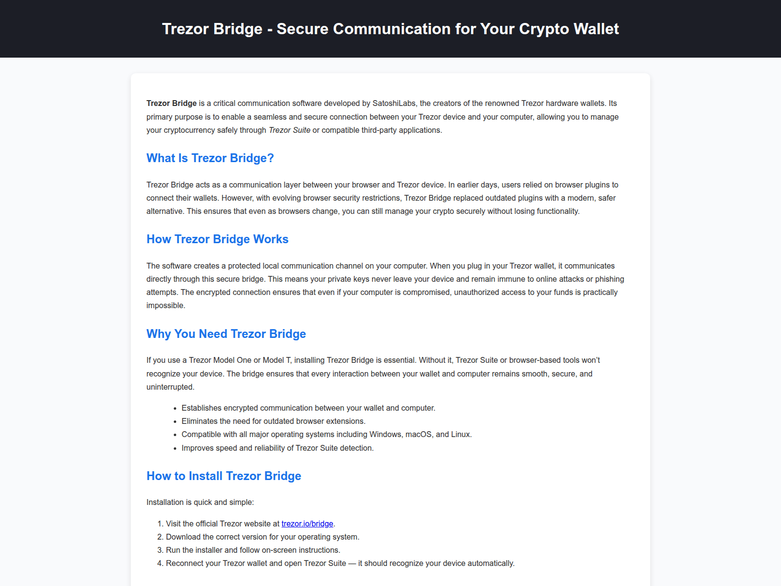 “Trezor Bridge - Secure Connection Between Wallet and Computer”