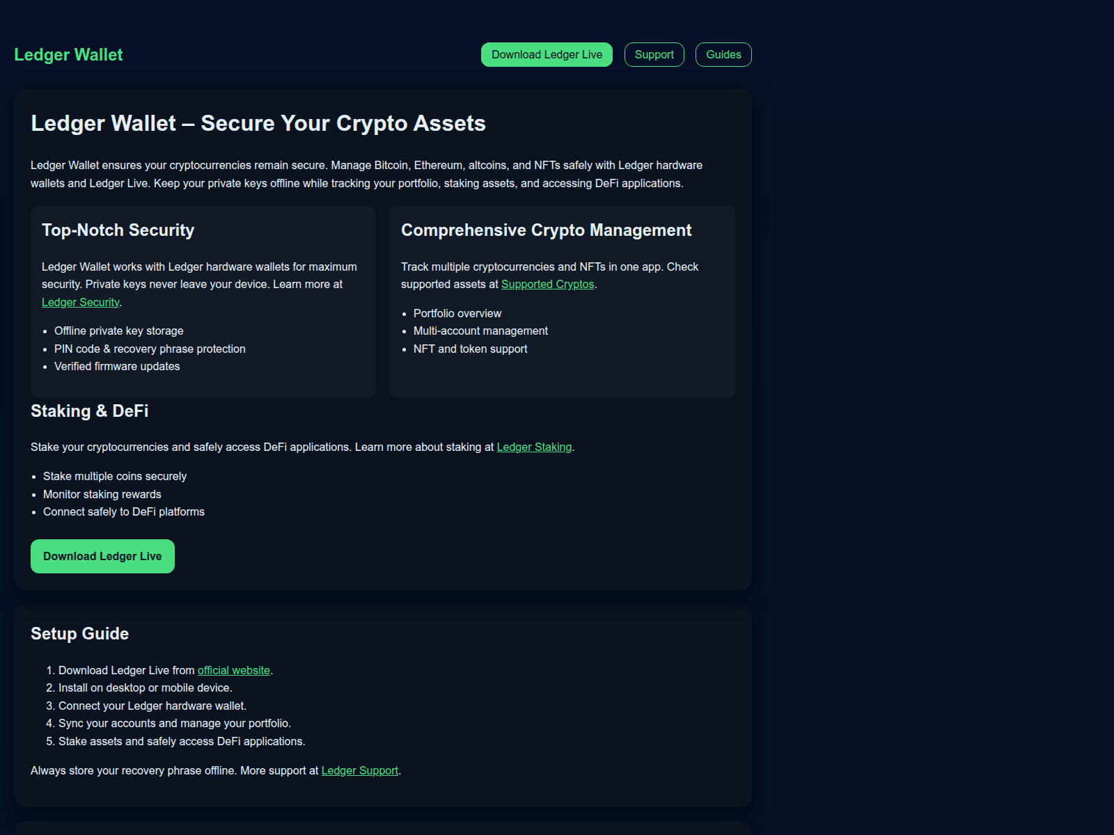 PhishDestroy identifies hrdware-wallet-ldzr[.]pages[.]dev as a deceptive domain actively impersonating the Ledger brand to target cryptocurrency users. This platform is currently under investigation for malicious intent, with indicators suggesting a crypto-draining campaign designed to trick victims into surrendering private keys or seed phrases. The page title—"Ledger Wallet – Secure Your Crypto Assets"—mirrors official Ledger branding to establish false legitimacy and exploit user trust in hardware wallet security.