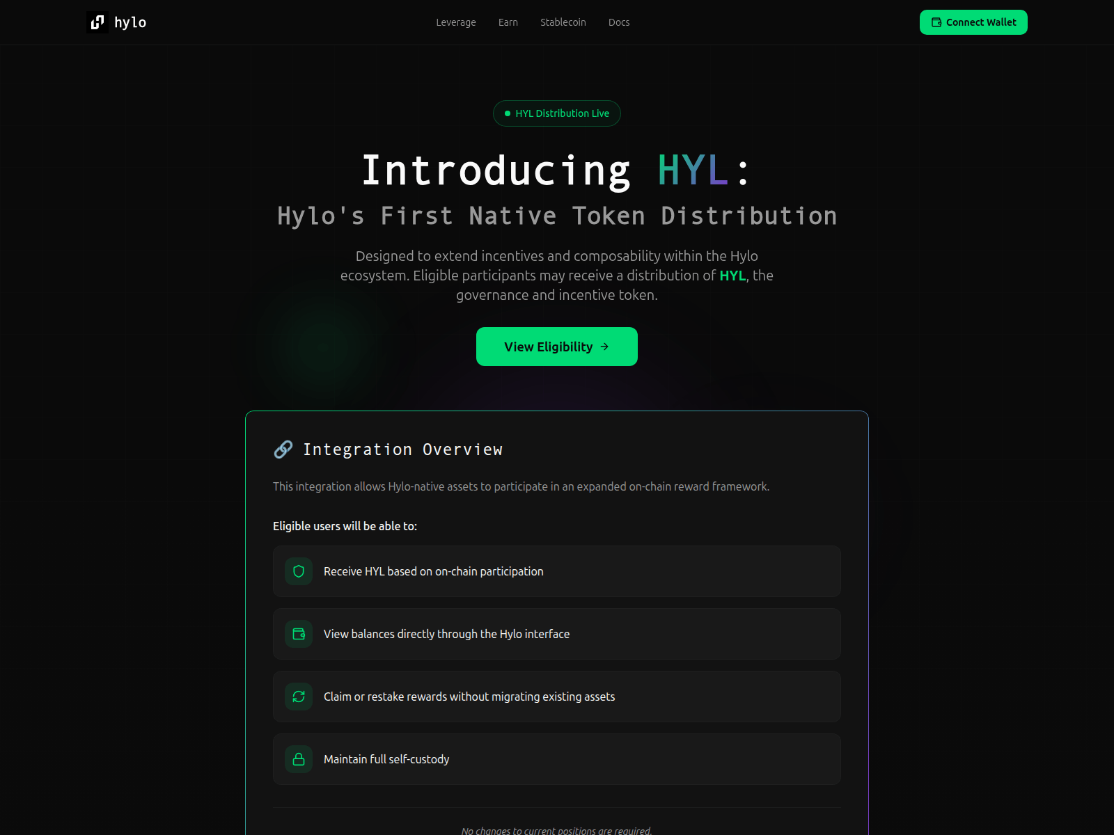 The site displays a page titled “Introducing HYL | Hylo's First Native Token Distribution”.