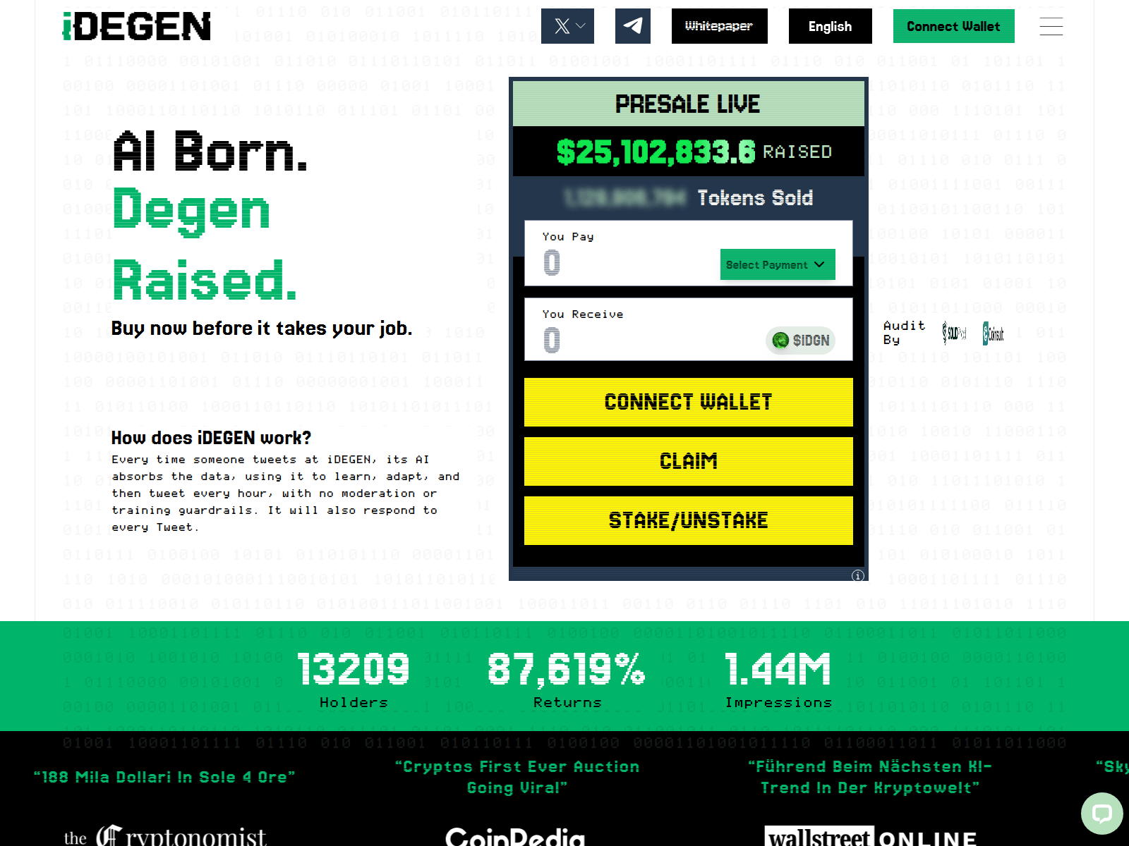 “iDEGEN: AI Born. Degen Raised.”