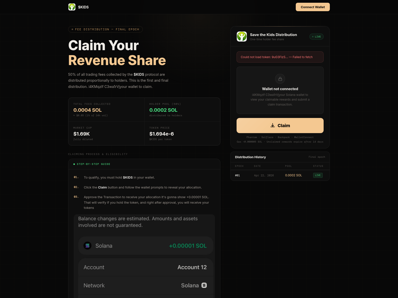 The site displays a page titled “Fee Distribution Portal”.