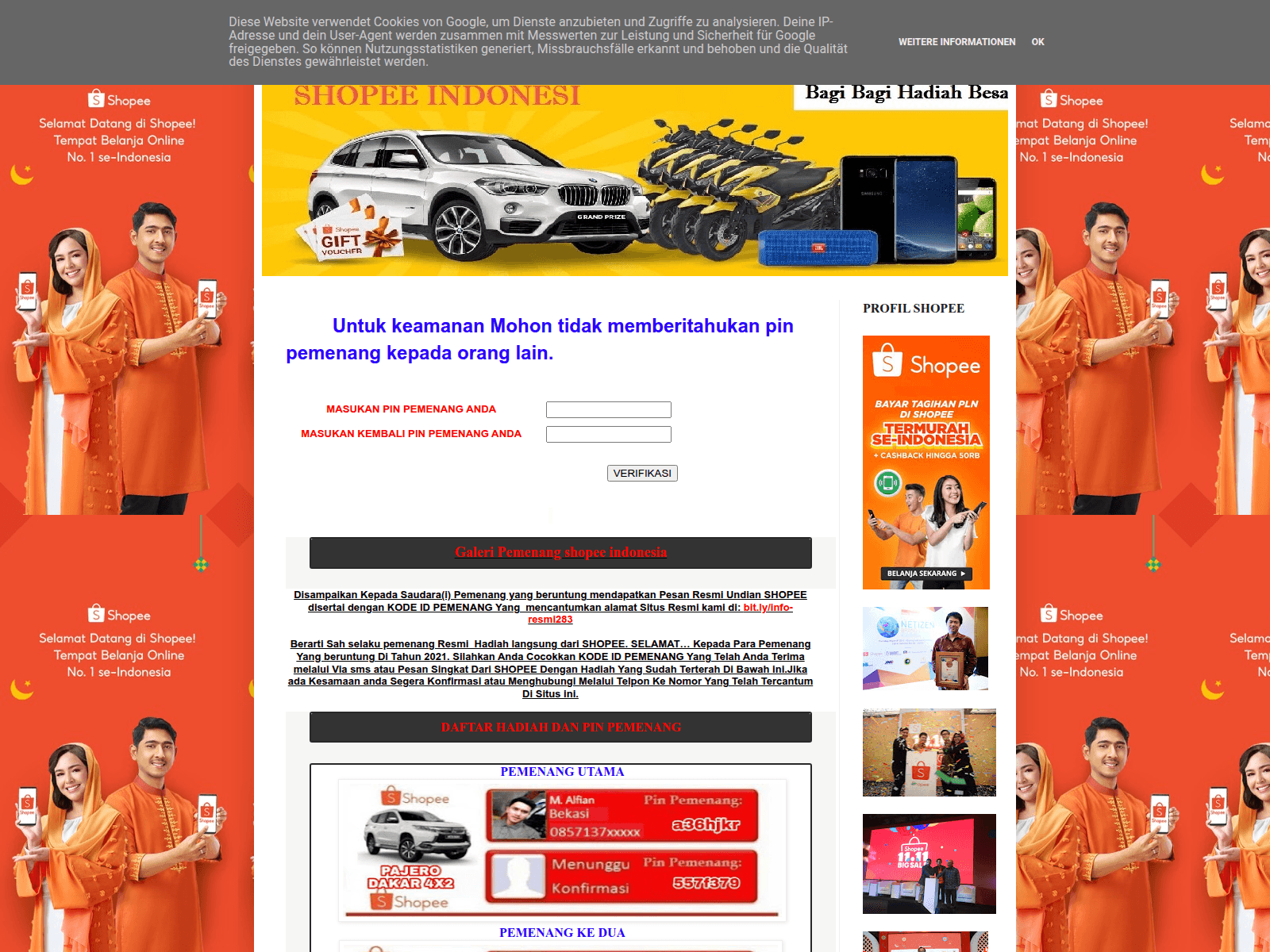The site displays a page titled “SHOPEE”.