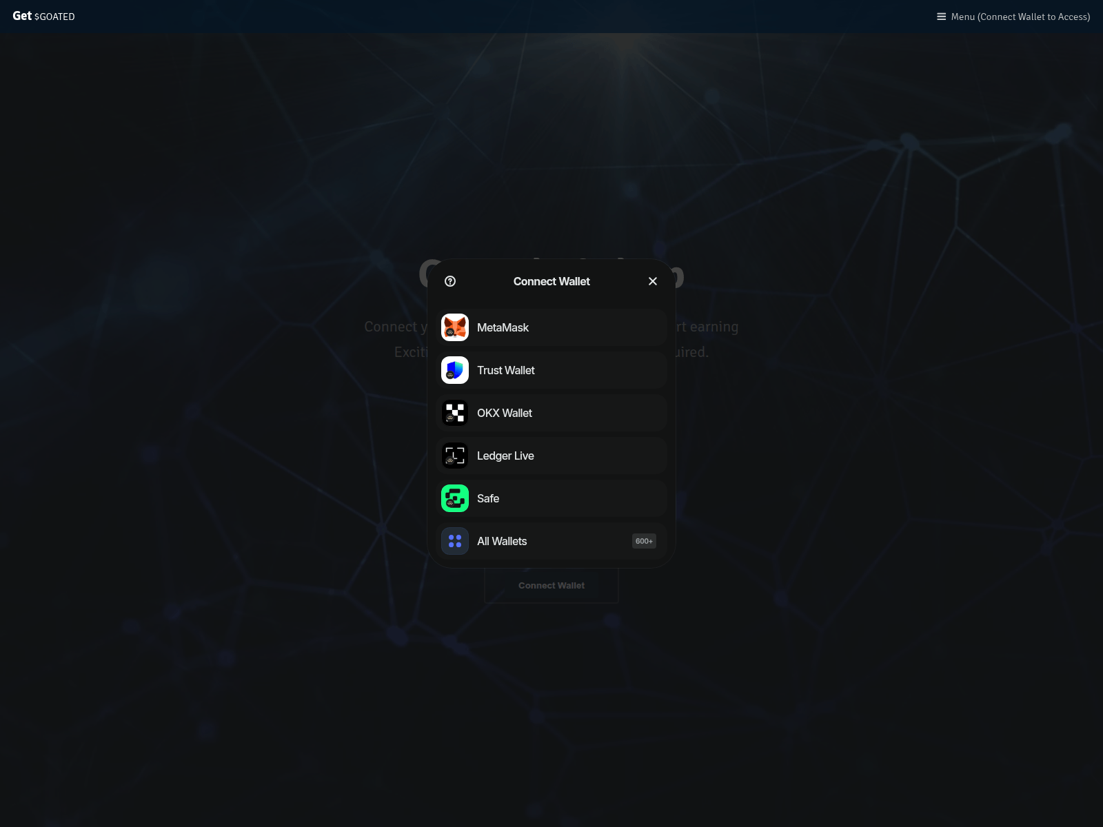 The site displays a page titled “$GOATED Airdrop”, which may be designed to impersonate Airdrop Scam.