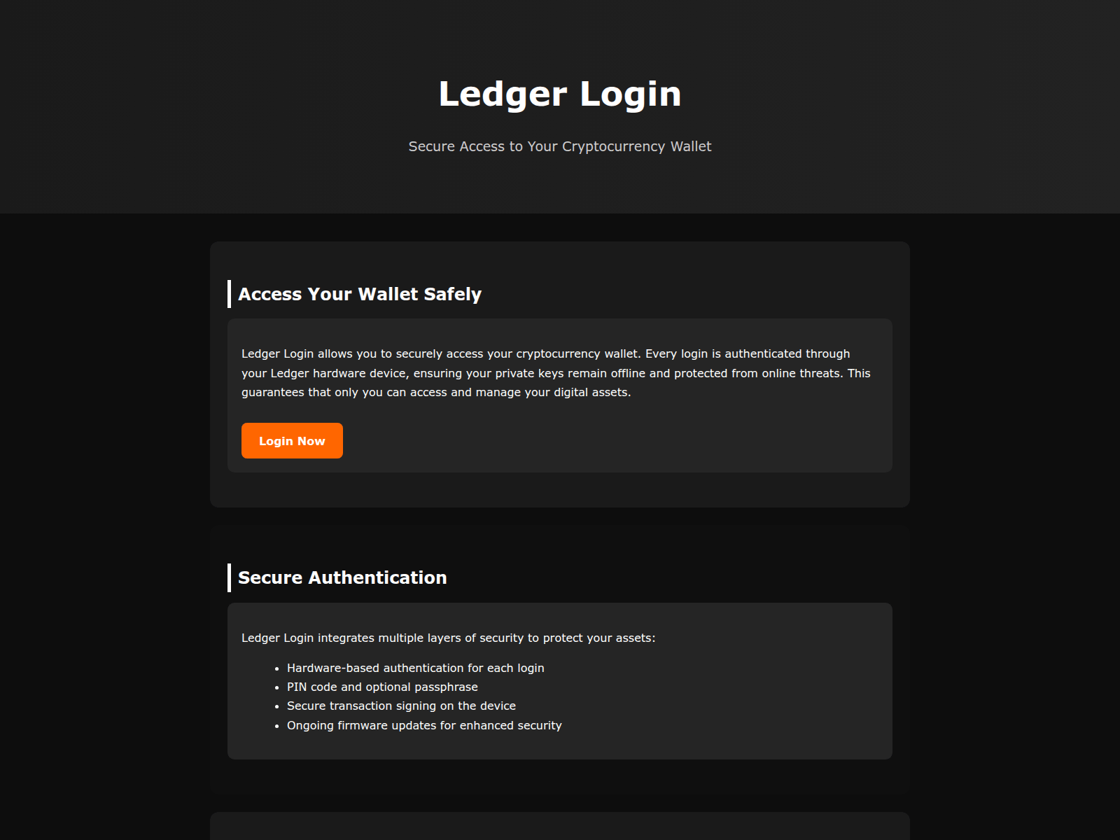 The site displays a page titled “Ledger Login — Secure Access”, which may be designed to impersonate Ledger.