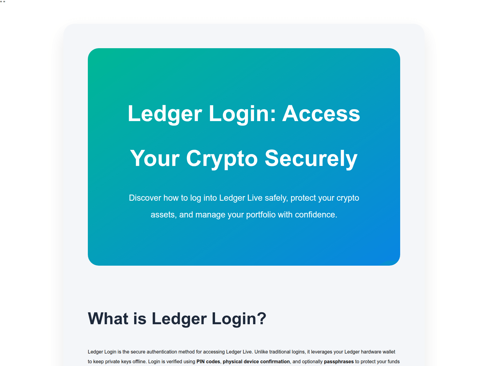 “Ledger® Login | Getting started”
