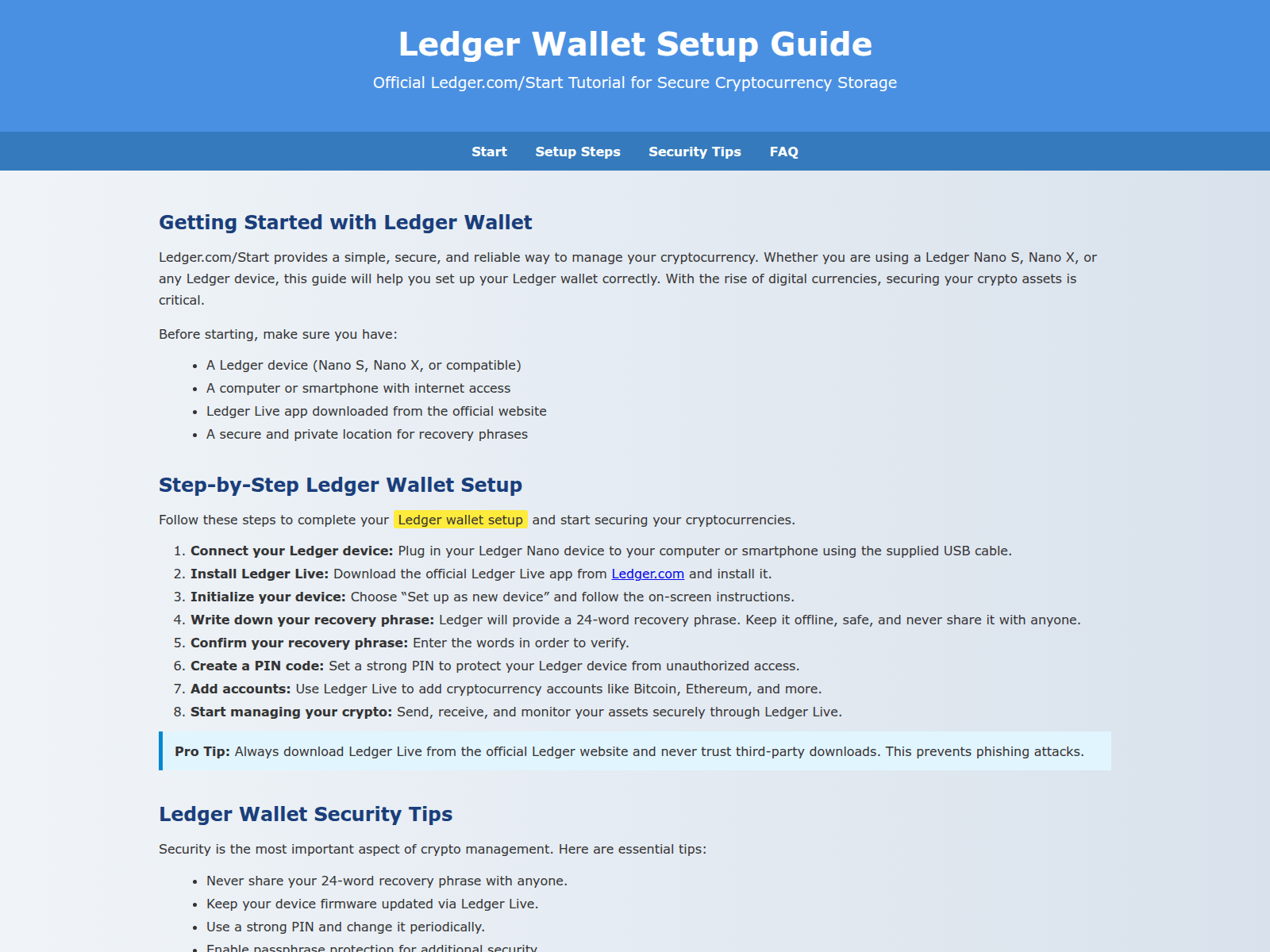 “Ledger Wallet Setup Guide - Ledger.com/Start”