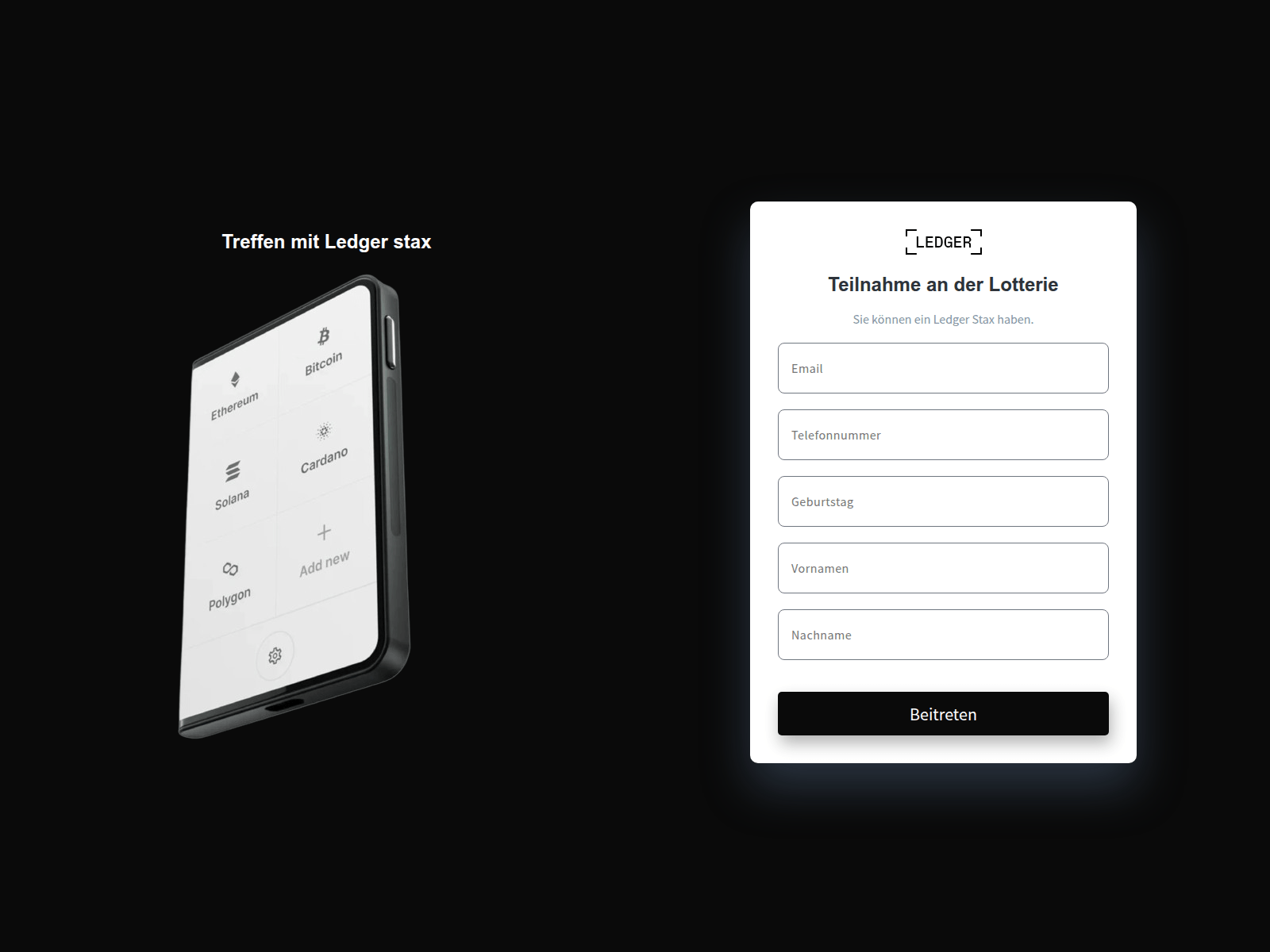 The site displays a page titled “Hardware Wallet”, which may be designed to impersonate Ledger.