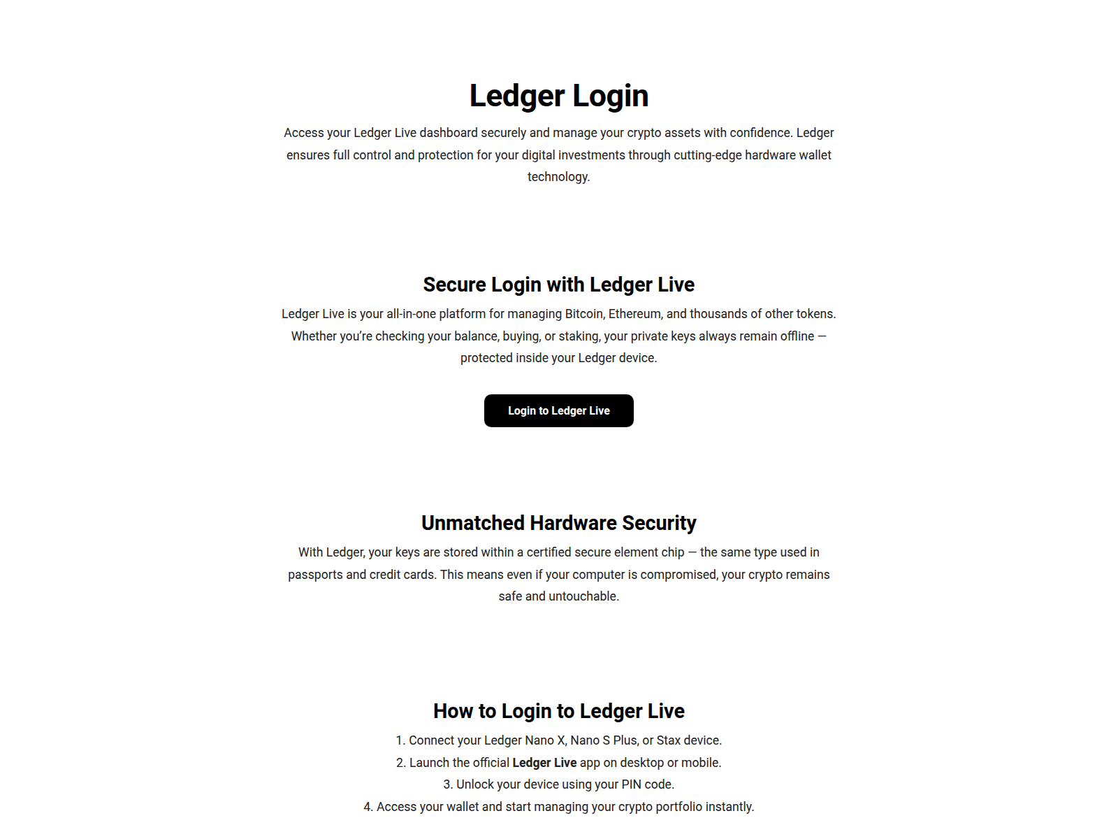 Always access Ledger through the official website. Never enter your seed phrase or private keys on any website. Use hardware wallets for additional security.