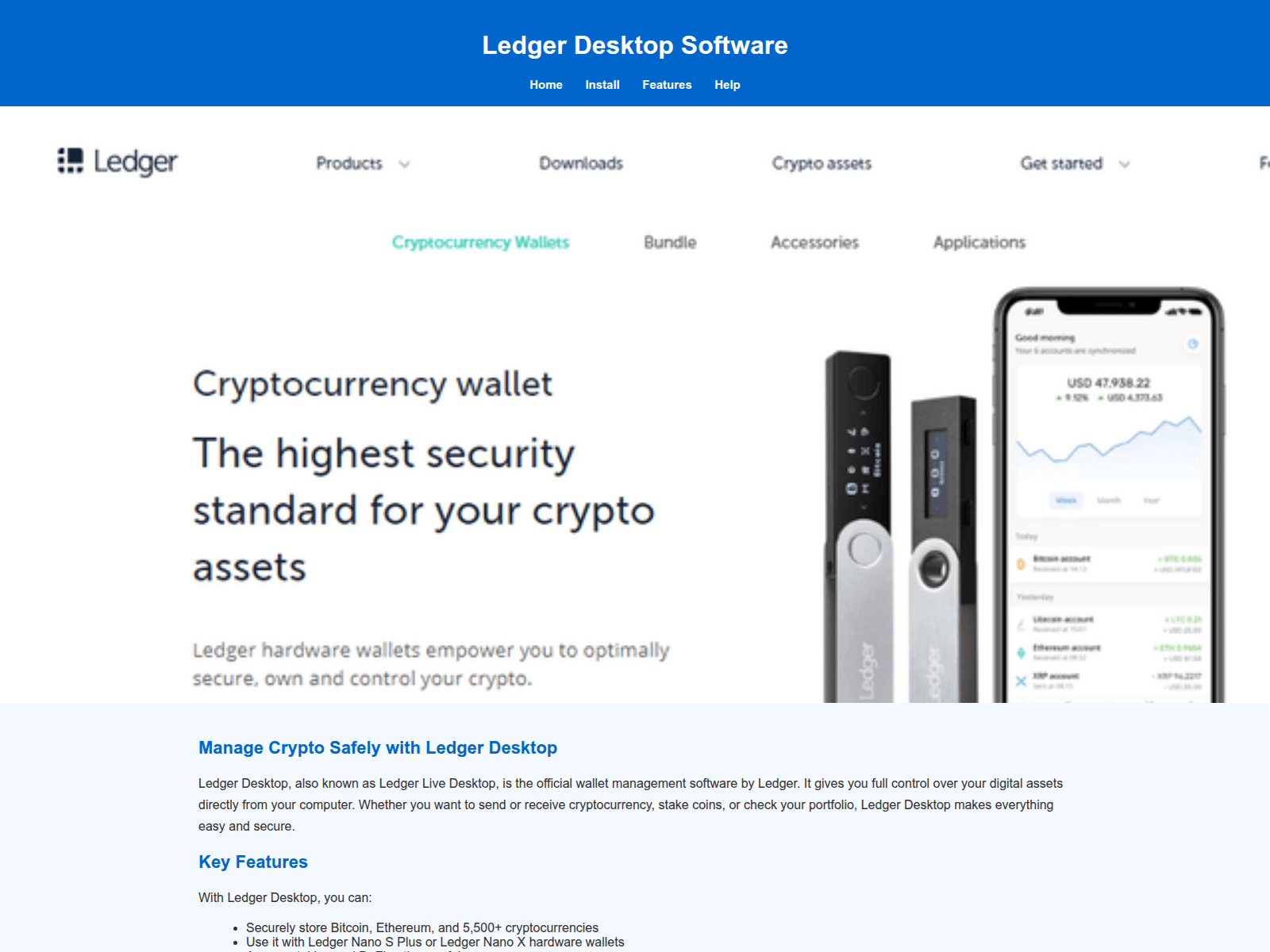 The site displays a page titled “Ledger Desktop App – Download & Wallet Access”.