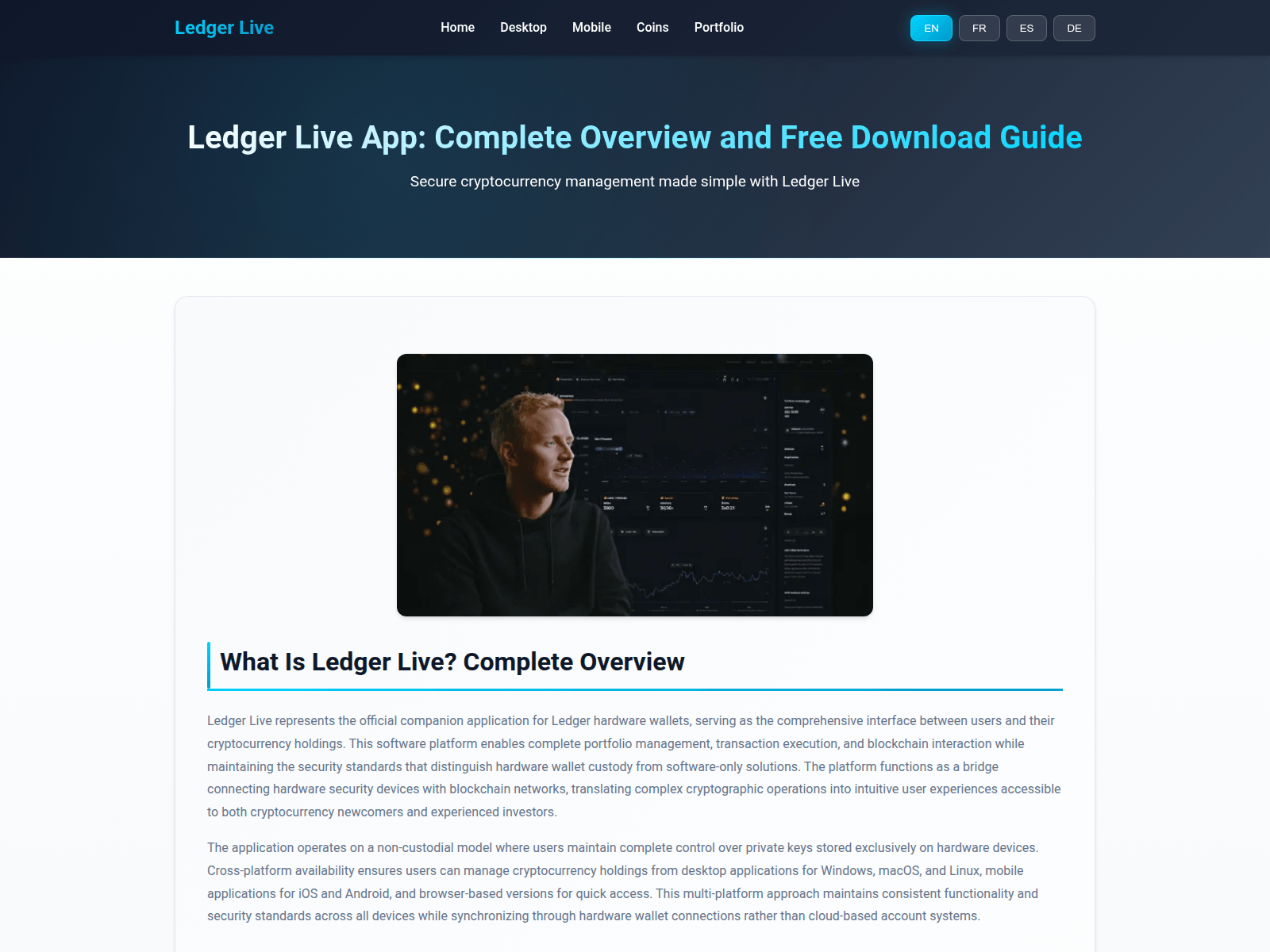The site displays a page titled “Ledger Live Free Download | Official App Features 2025”, which may be designed to impersonate across.