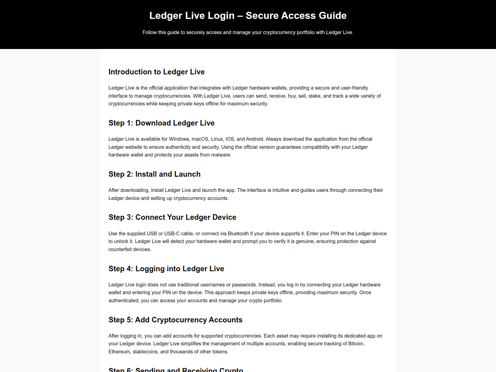 The site displays a page titled “Ledger Live Login – Secure Access Guide”, which may be designed to impersonate Ledger.
