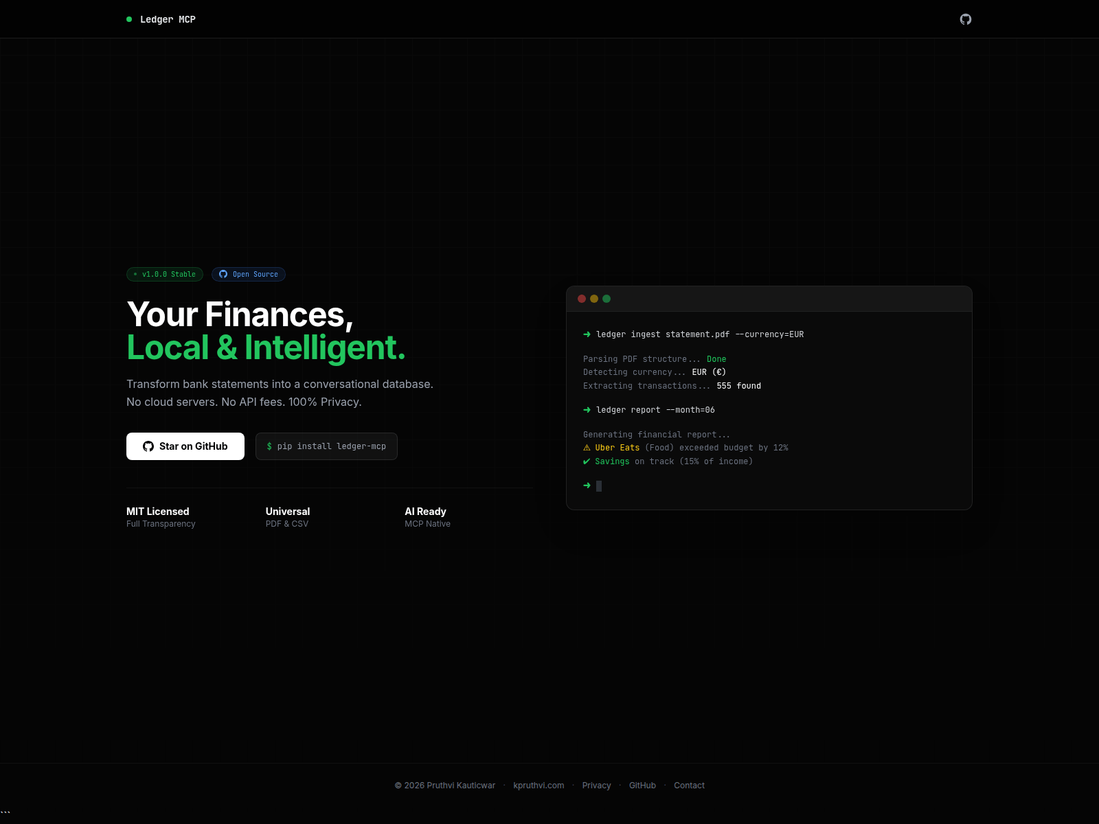 “Ledger MCP - Privacy-First Financial AI”