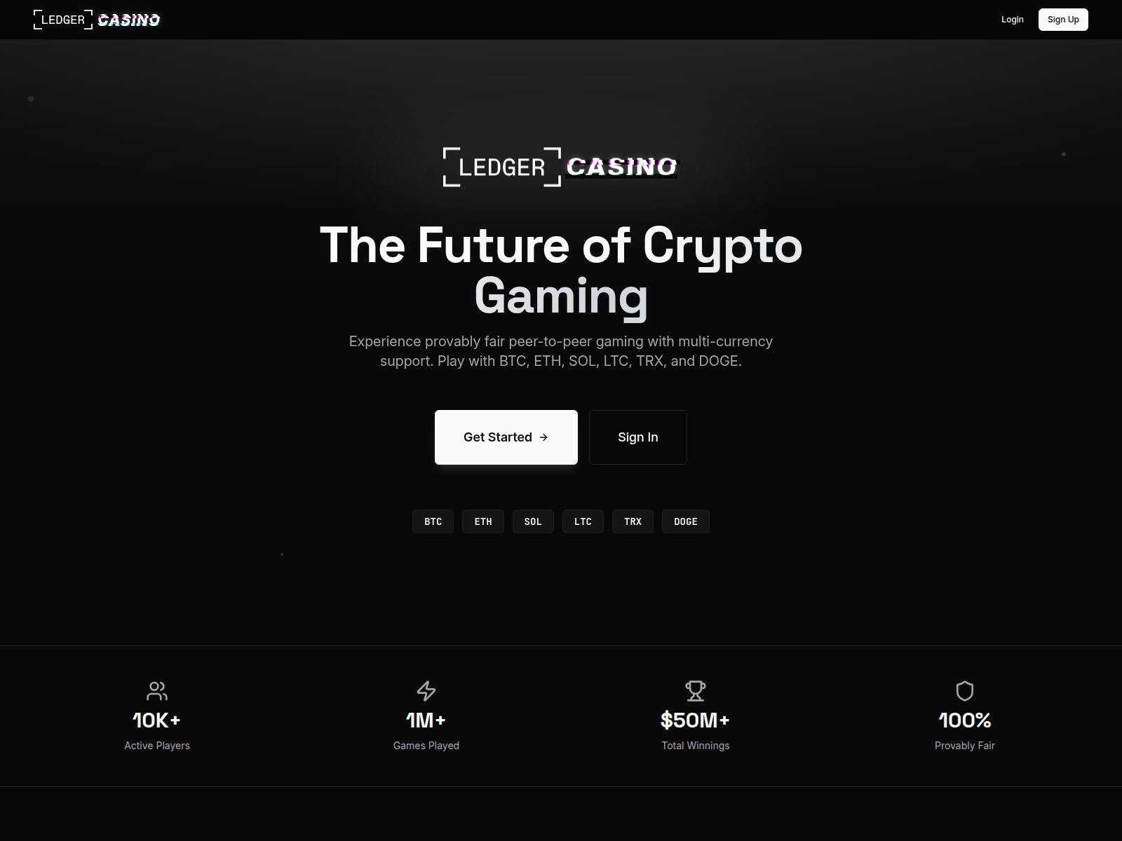 The site displays a page titled “Ledger Casino - Premium Crypto Gaming”, which may be designed to impersonate ledger.