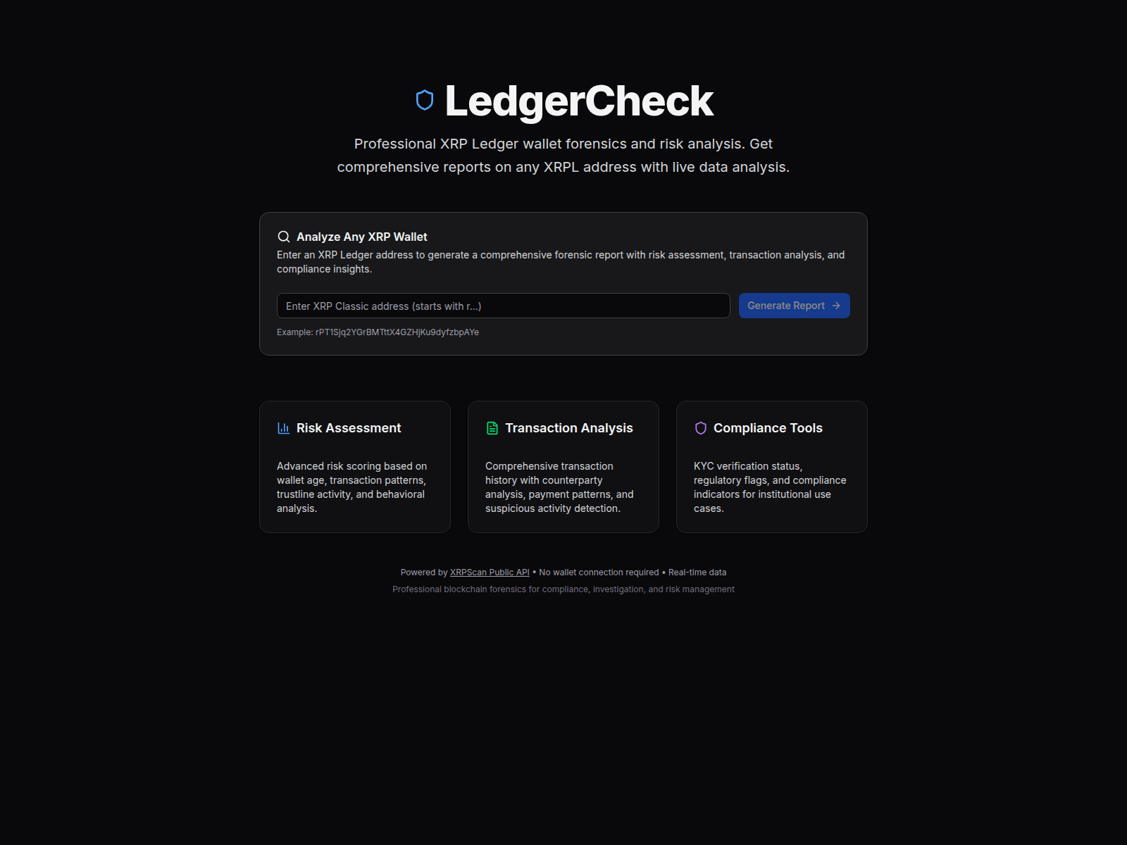 Domain Security & Threat Intelligence Report“LedgerCheck - XRP Ledger Wallet Forensics & Risk Analysis”