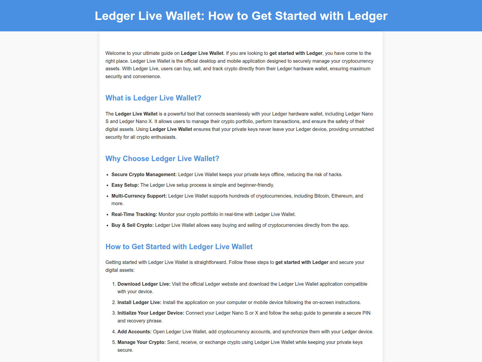 Always access Ledger through the official website. Never enter your seed phrase or private keys on any website. Use hardware wallets for additional security.