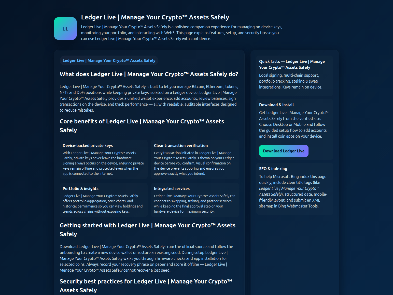 “Ledger Live | Manage Your Crypto™ Assets Safely”
