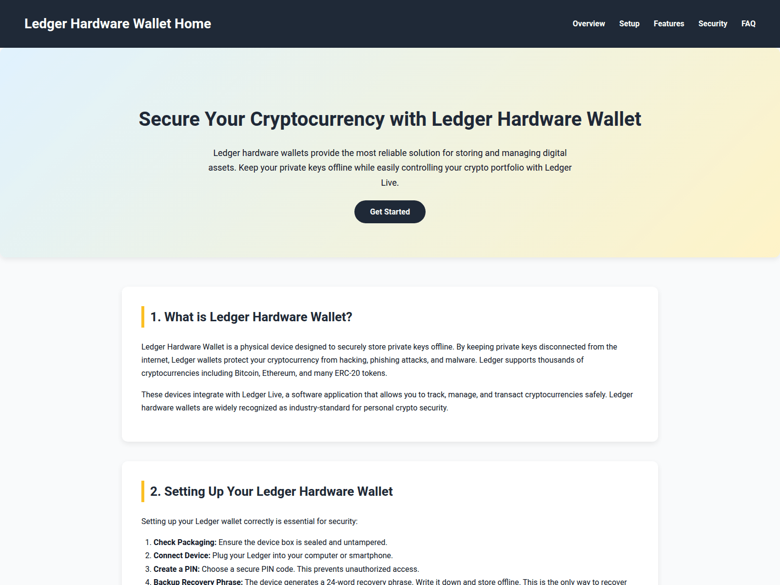 The site displays a page titled “Ledger Hardware Wallet Home | Complete Guide”.