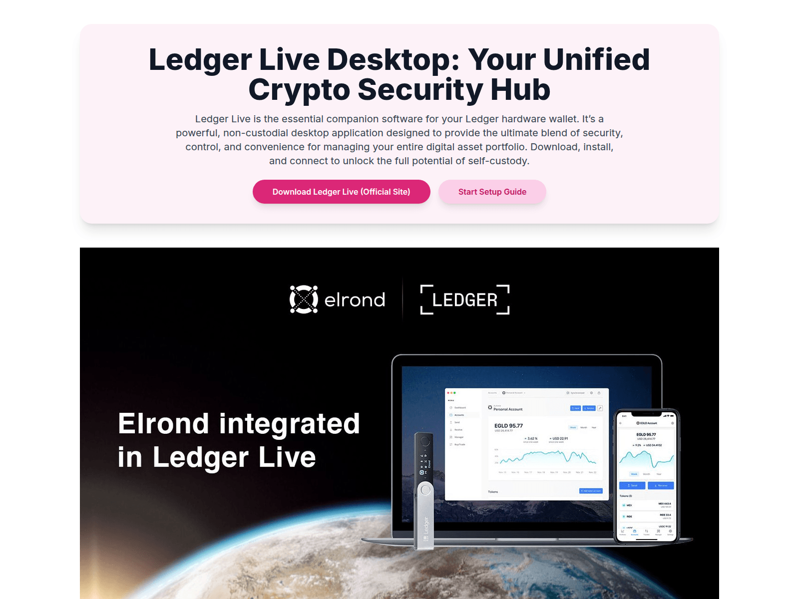 The site displays a page titled “Ledger Live Desktop: The Ultimate Security Hub”, which may be designed to impersonate Ledger.