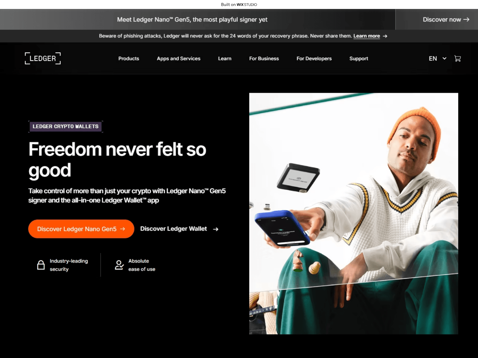 The site displays a page titled “404 Error: Page Not Found | Wix Studio”, which may be designed to impersonate Ledger.