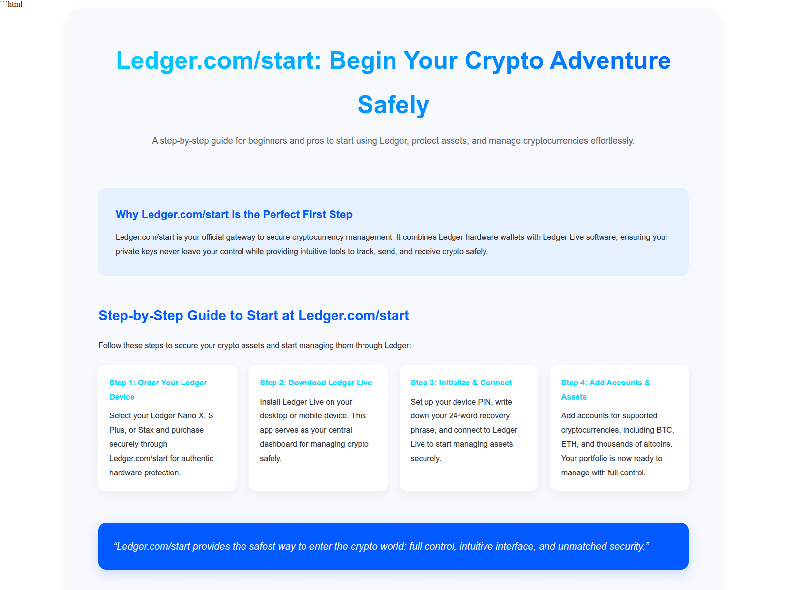 “Ledger Getting Started Hub — ledger.com/start”