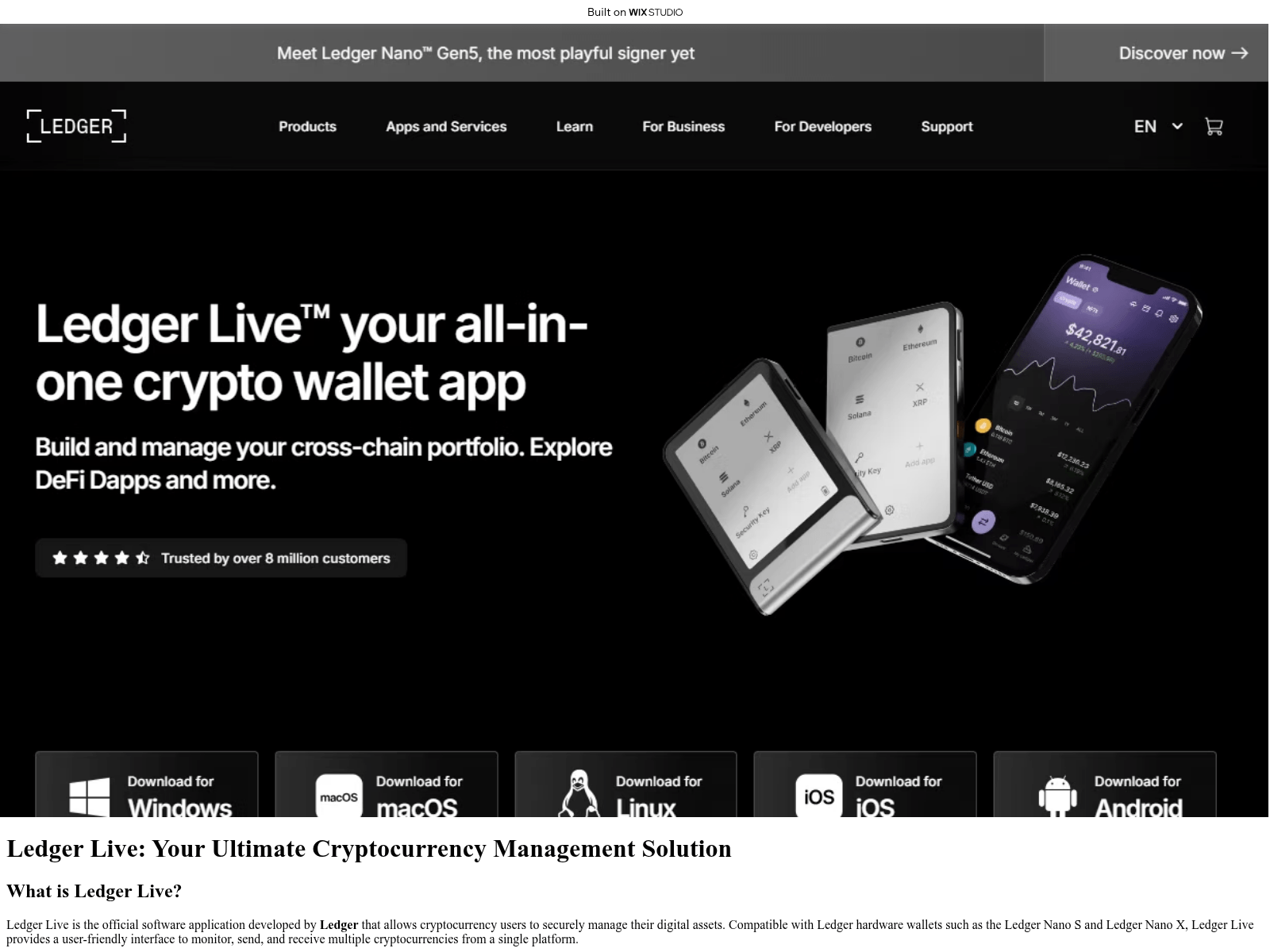 The site displays a page titled “404 Error: Page Not Found | Wix Studio”, which may be designed to impersonate Ledger.