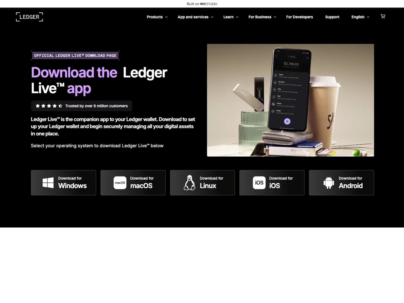 The site displays a page titled “404 Error: Page Not Found | Wix Studio”, which may be designed to impersonate Ledger.