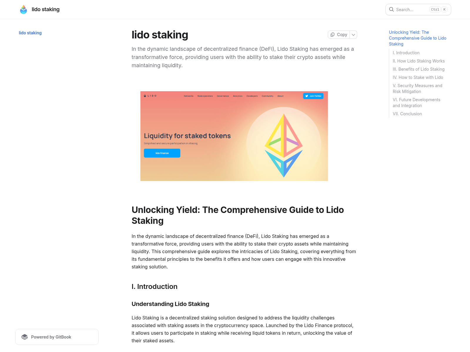 Forensic screenshot of lidoedwokstaking.gitbook.io showing the phishing page layout