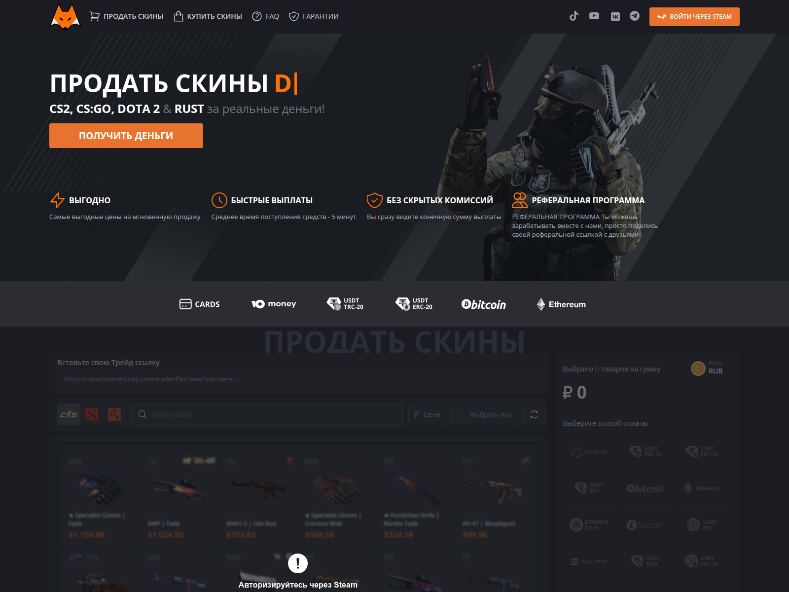 “Продажа скинов КС с мгновенной выплатой - Ð...”