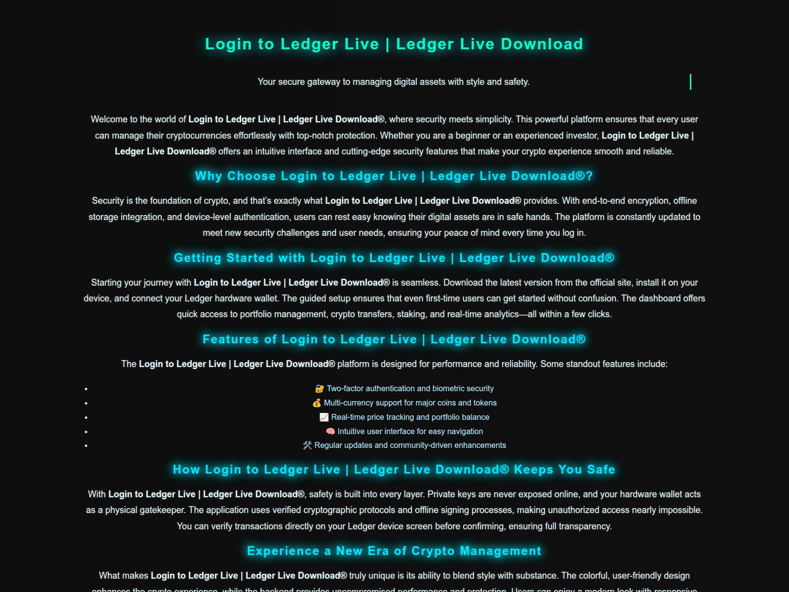 The site displays a page titled “Login to Ledger Live | Ledger Live Download”, which may be designed to impersonate Ledger.