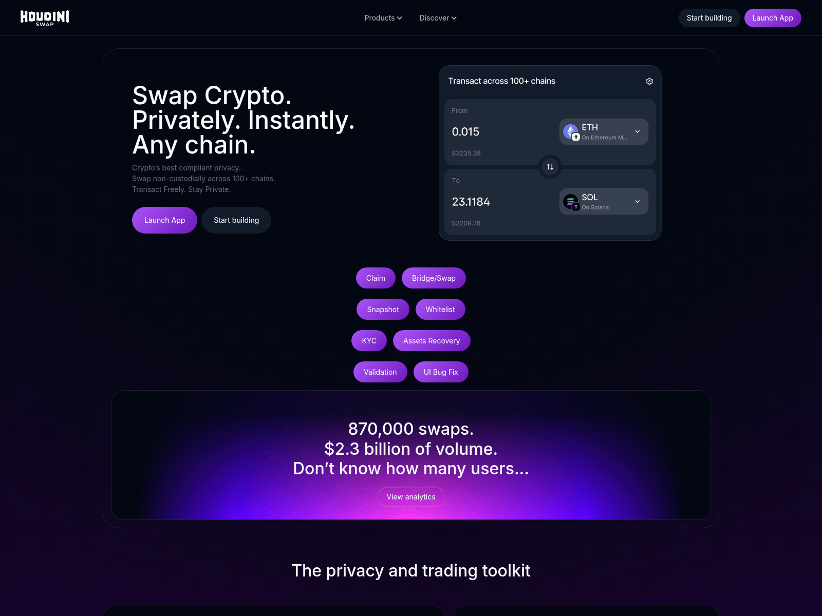 The site displays a page titled “Houdini Swap –”.