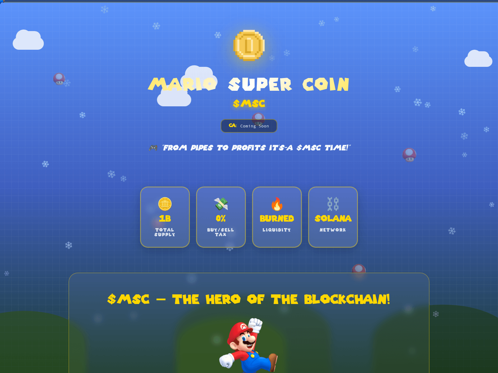 The site displays a page titled “Mario Super Coin - $MSC π”.
