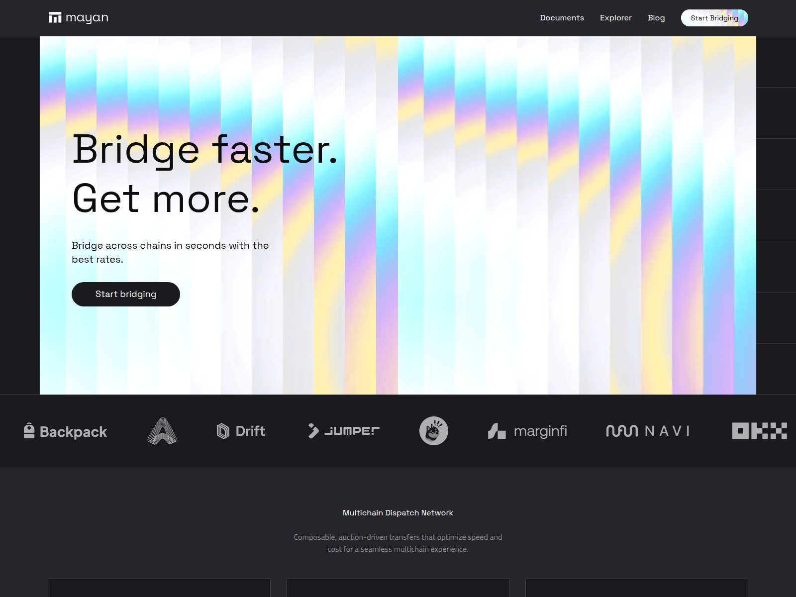 The site displays a page titled “Mayan Finance| Bridge faster. Get more.”.