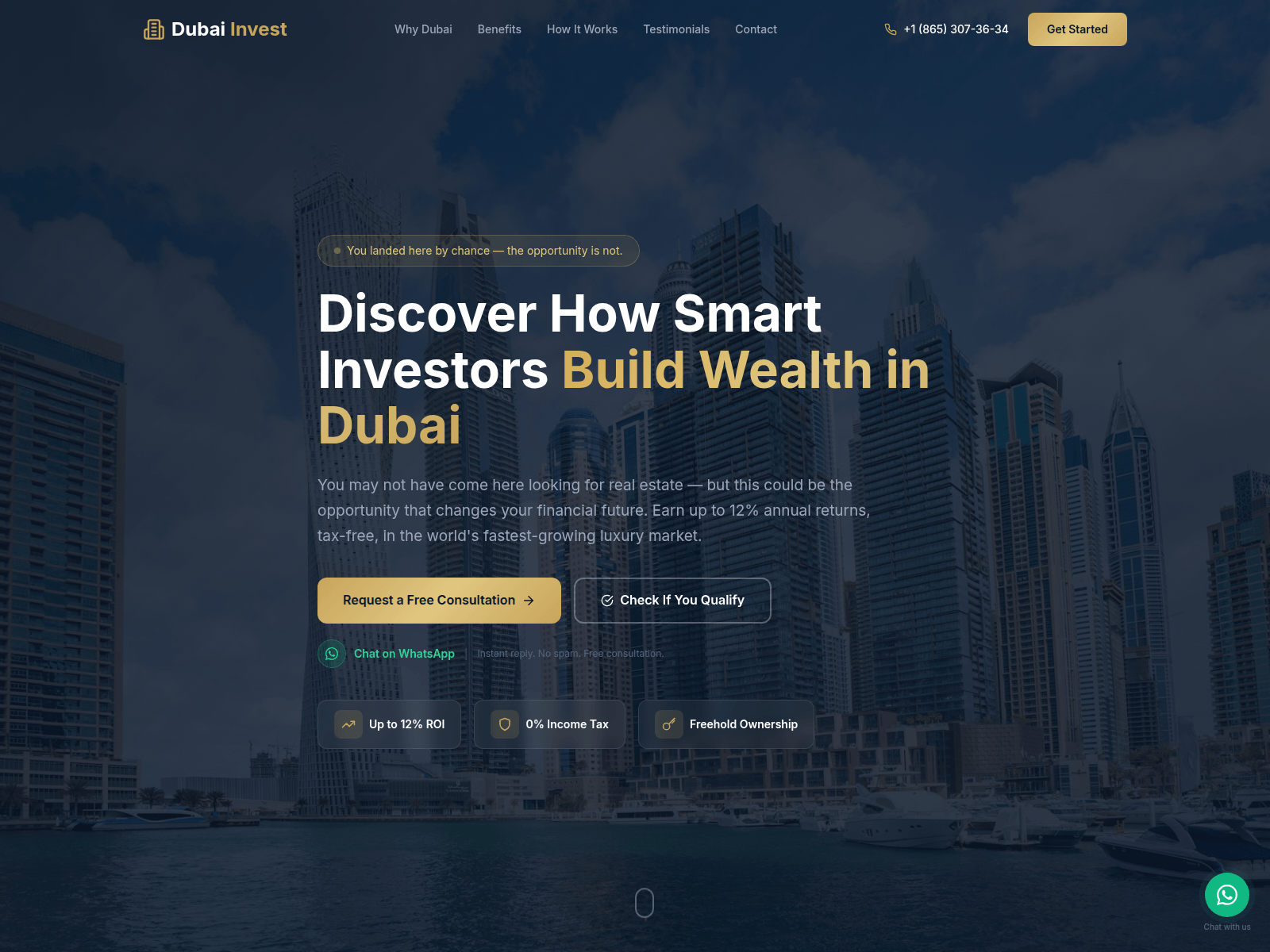 The site displays a page titled “Dubai Invest - Smart Real Estate Investment in Dubai”.