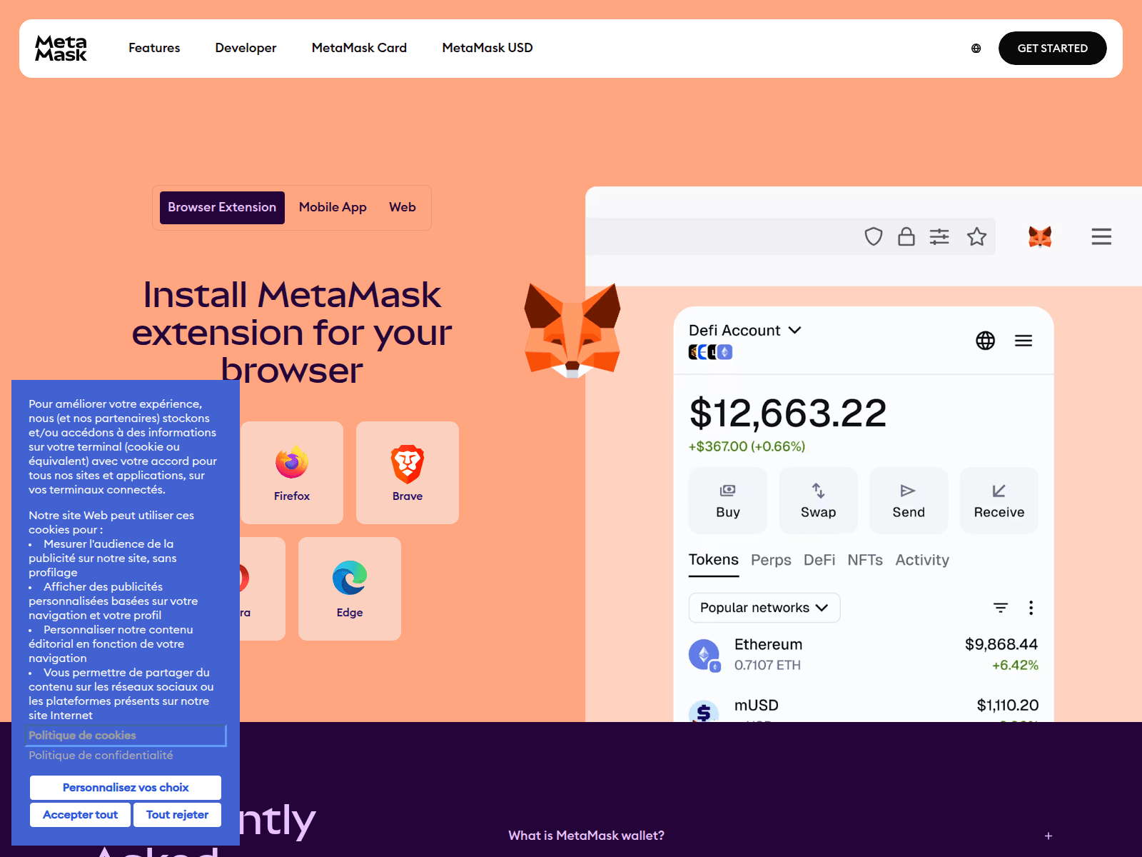 The site displays a page titled “Download MetaMask: The Premier Crypto Wallet App and Browser Extension”, which may be designed to impersonate MetaMask.