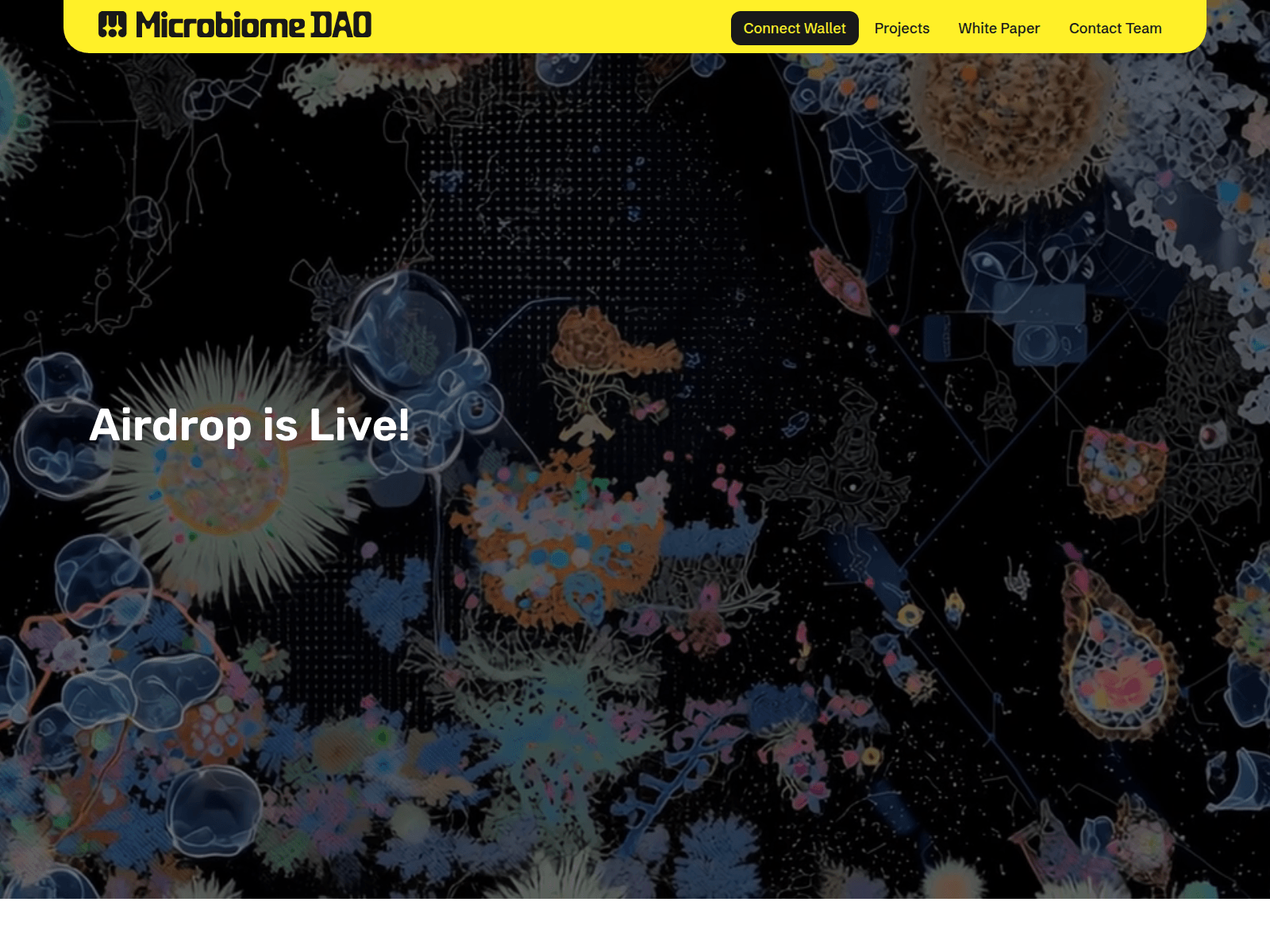 The site displays a page titled “Microbiome DAO”.