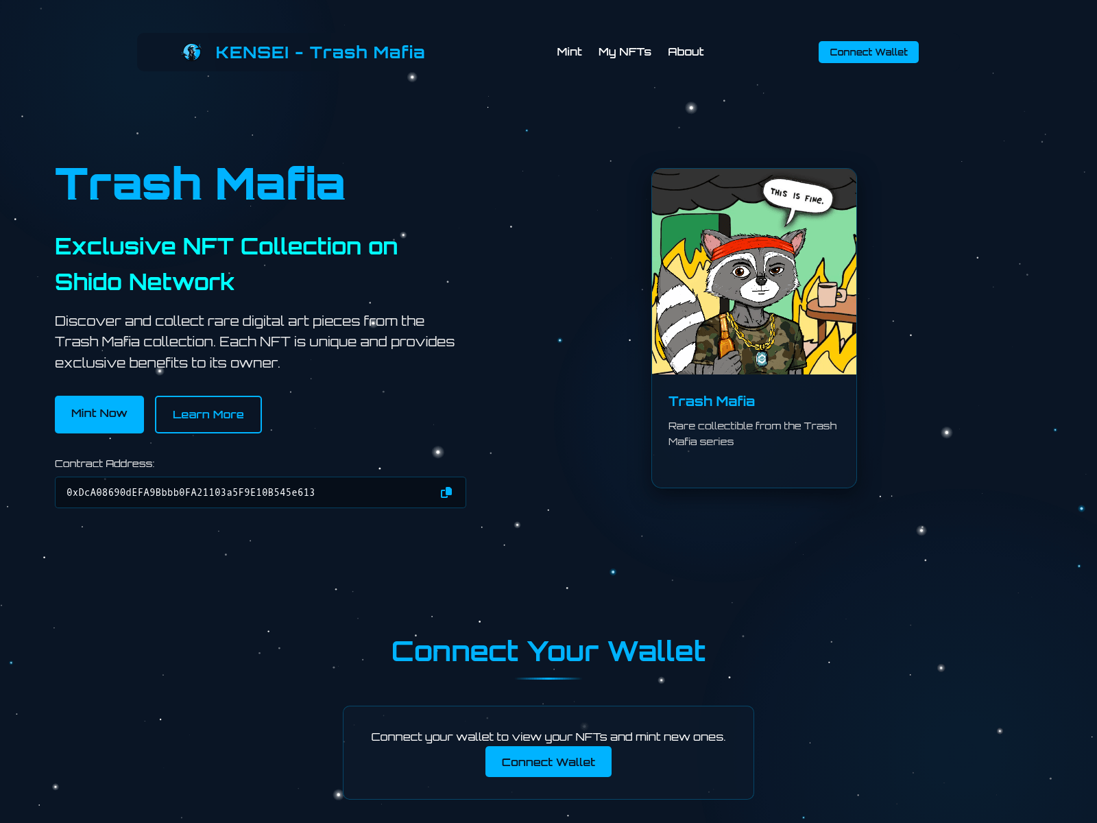 The site displays a page titled “Trash Mafia NFT Collection”, which may be designed to impersonate NFT Mint Scam.
