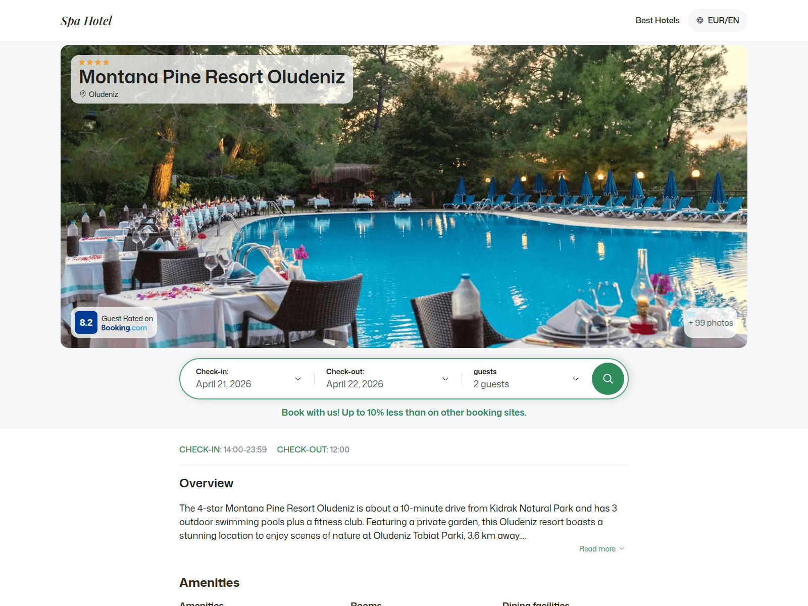 The site displays a page titled “Montana Pine Resort Oludeniz - Oludeniz, Turkey”.