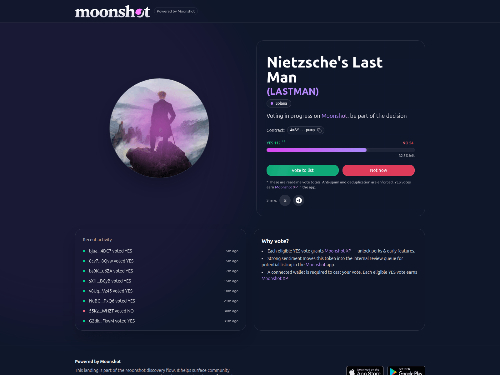 The site displays a page titled “Vote to List â Powered by Moonshot”, which may be designed to impersonate Moonshot.