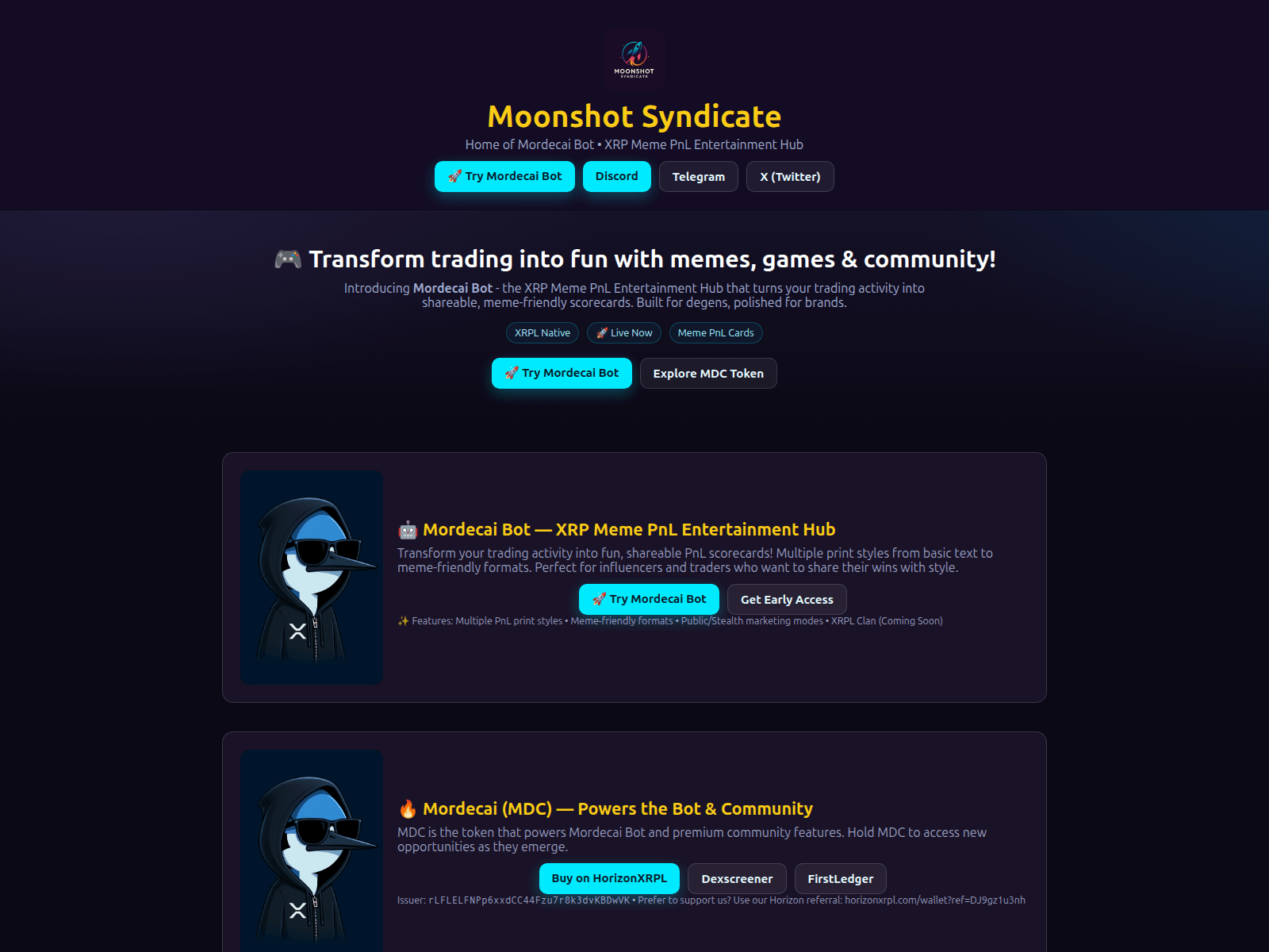 “Moonshot Syndicate — Mordecai Bot • XRPL • MDC Token”