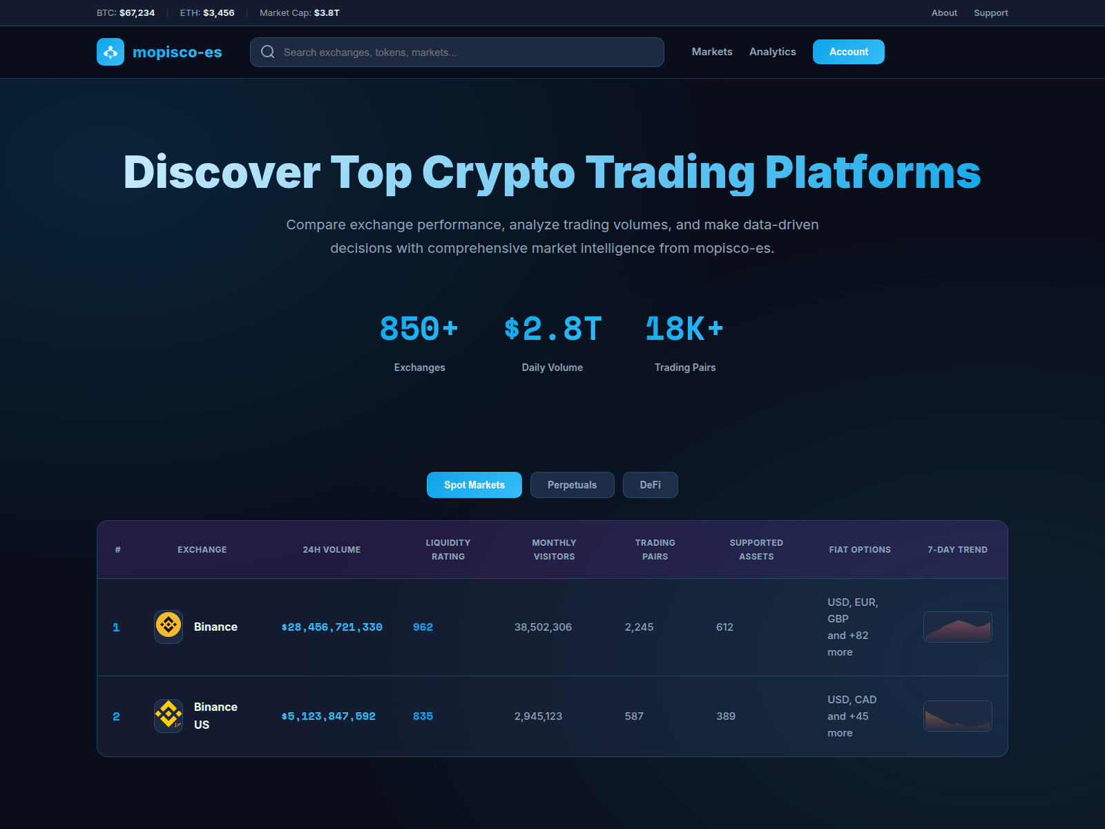 The site displays a page titled “mopisco-es - Smart Crypto Market Tracker”.