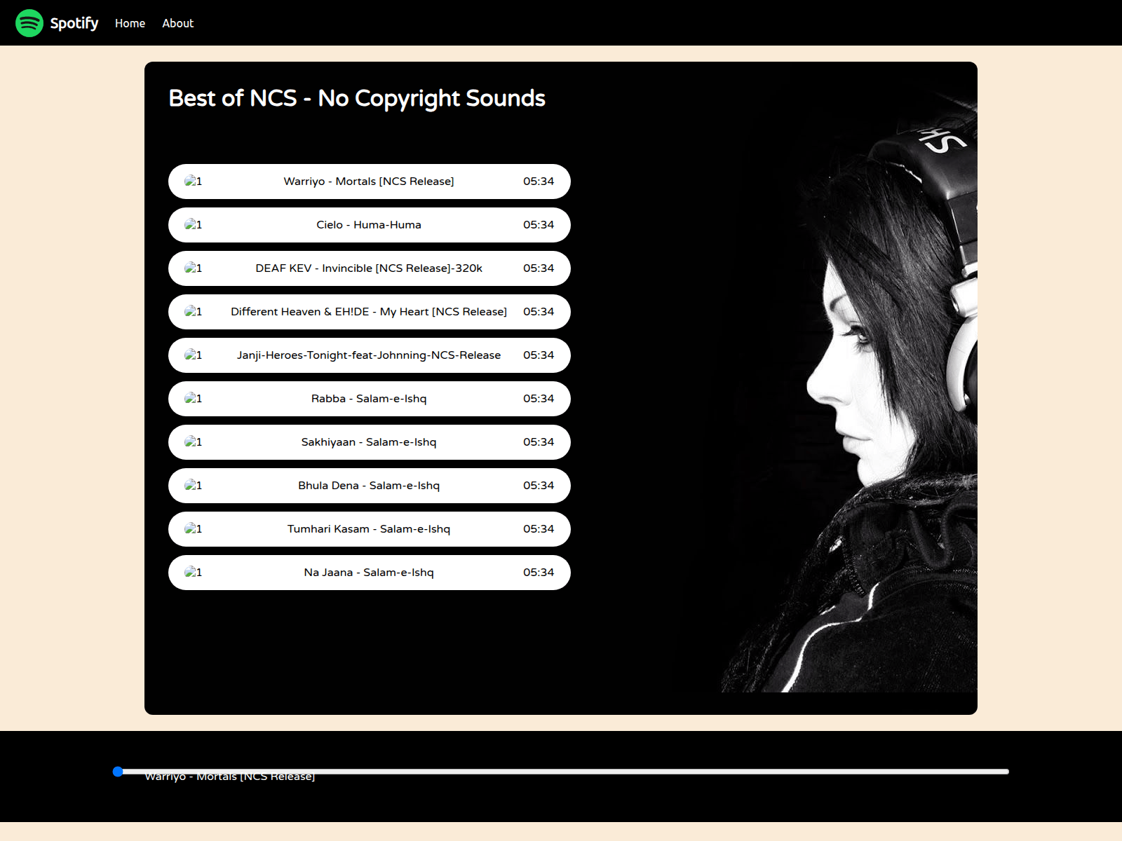 The site displays a page titled “Spotify - Your favourite music is here”.
