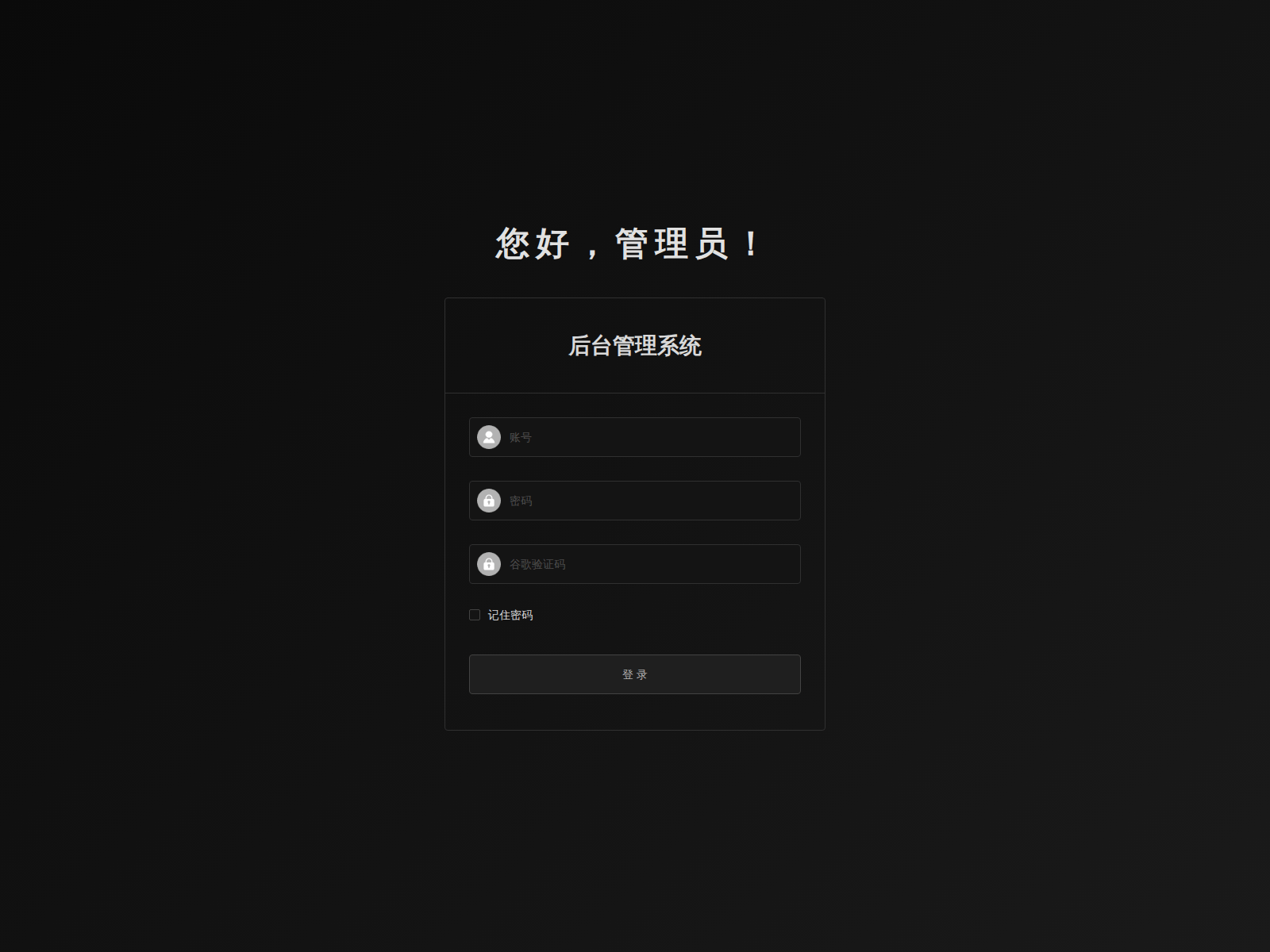 The site displays a page titled “后台管理系统”, which may be designed to impersonate Google.