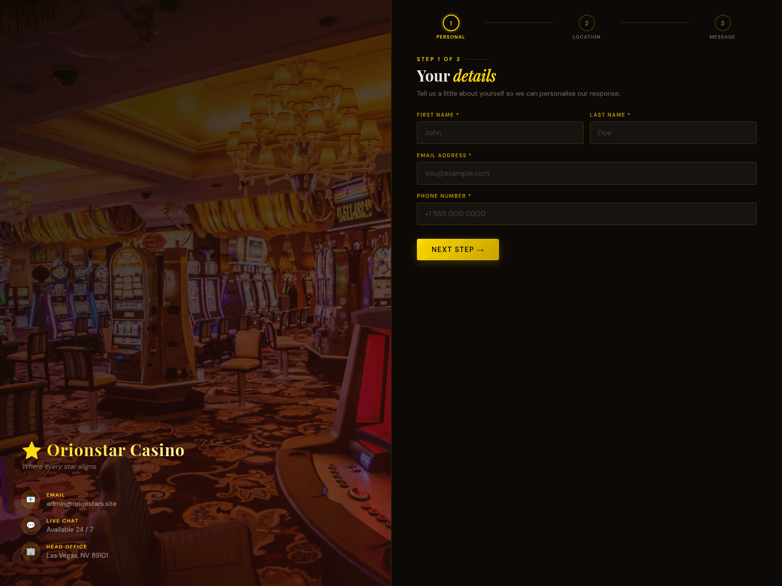 The site displays a page titled “Orionstar Casino — Work Application”.