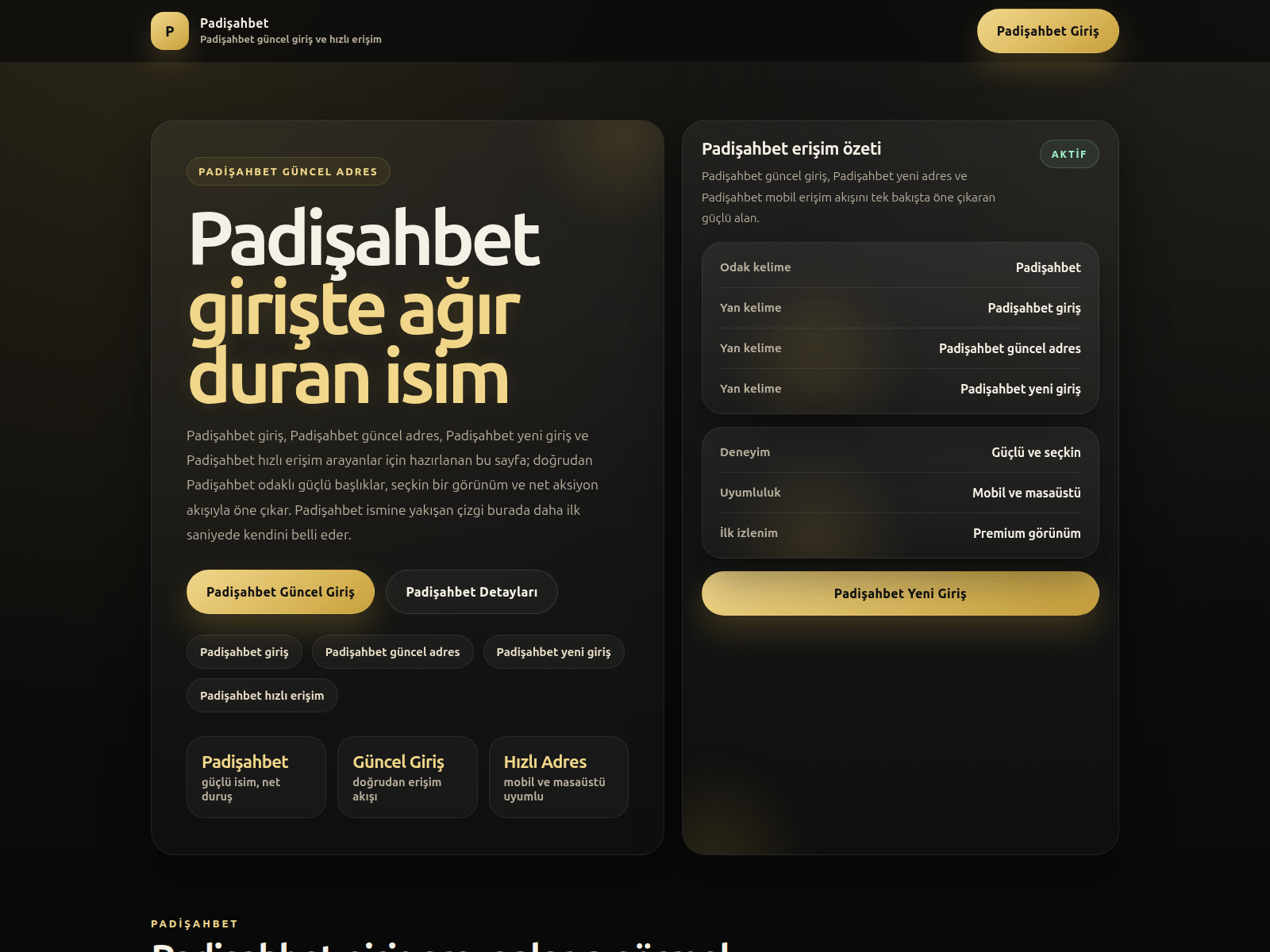 The site displays a page titled “Padişahbet Giriş 2026 | Padişahbet Güncel Adres ve Hızlı Erişim”.