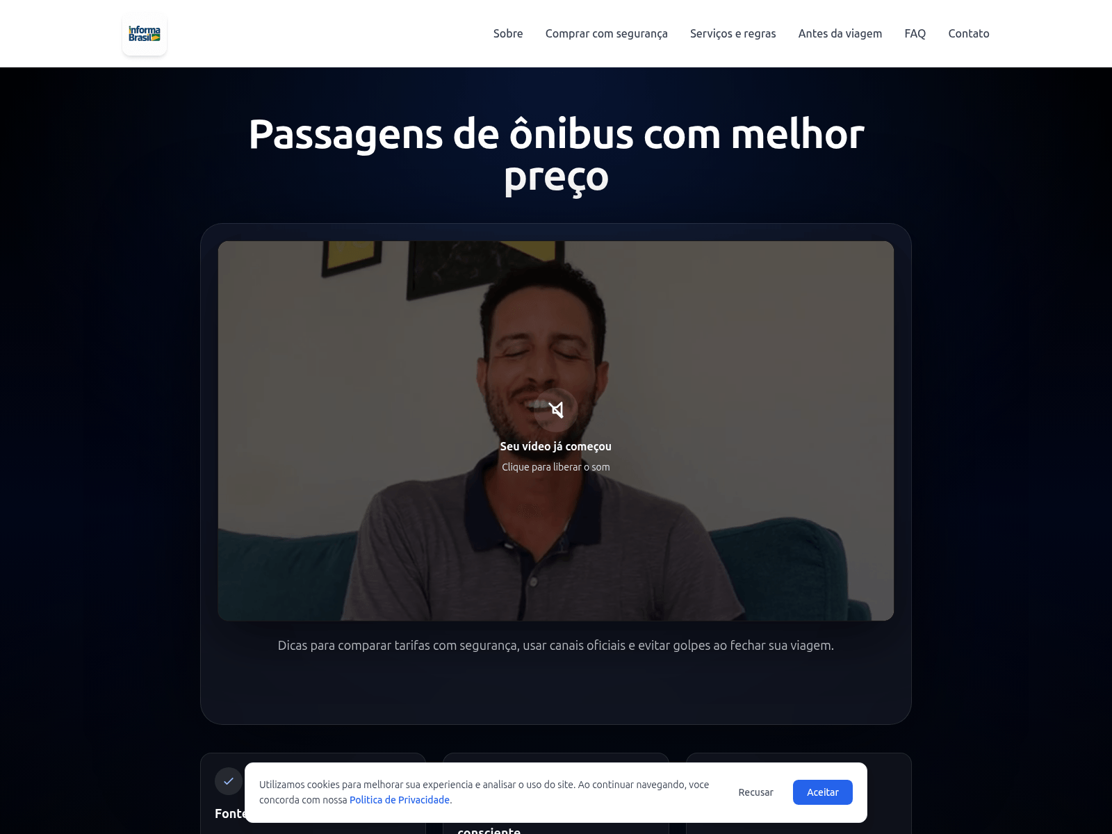 The site displays a page titled “Passagens de onibus com melhor preco | Viaja Brasil”.
