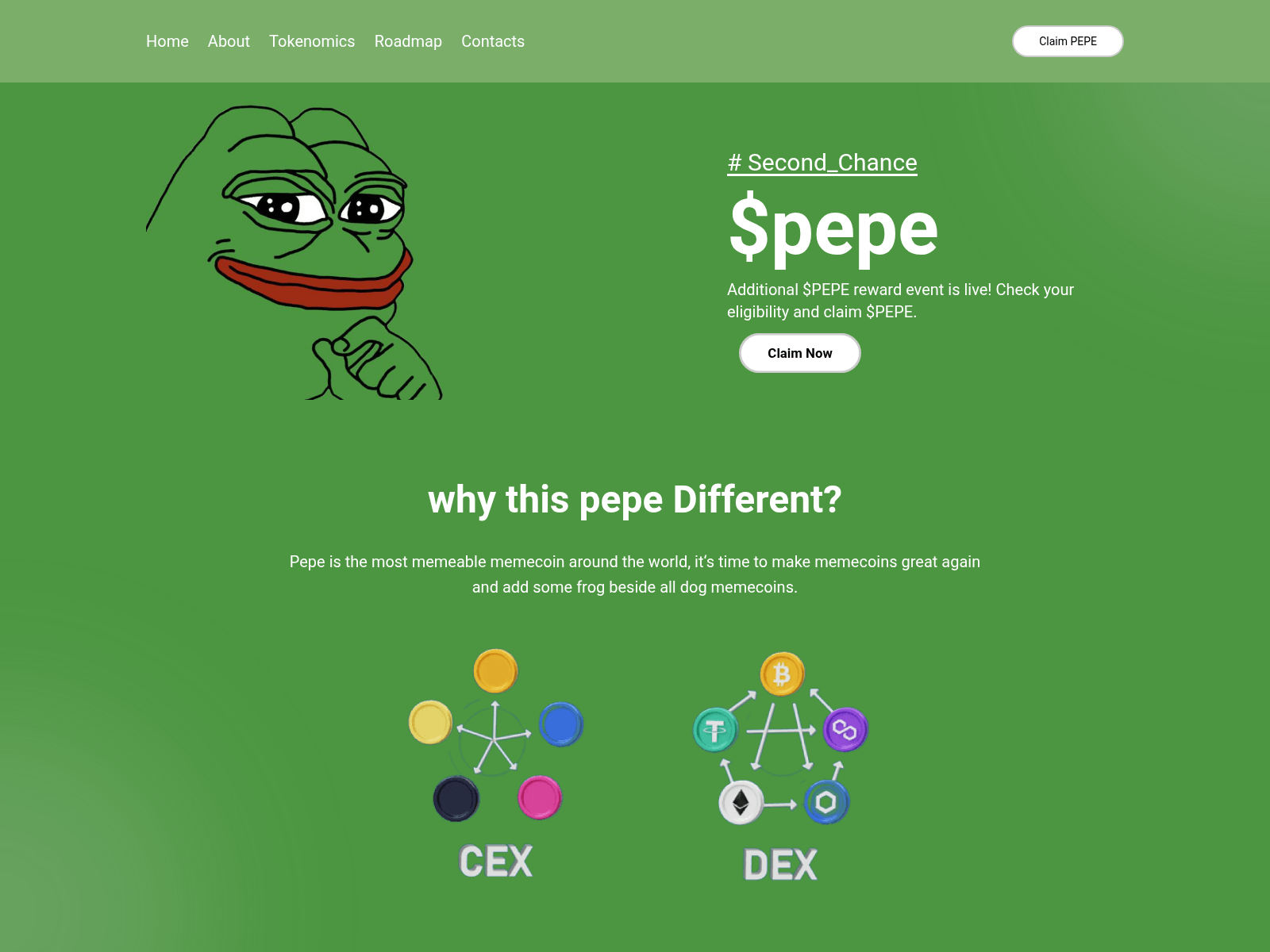 The site displays a page titled “Pepe Coin”, which may be designed to impersonate coingecko.