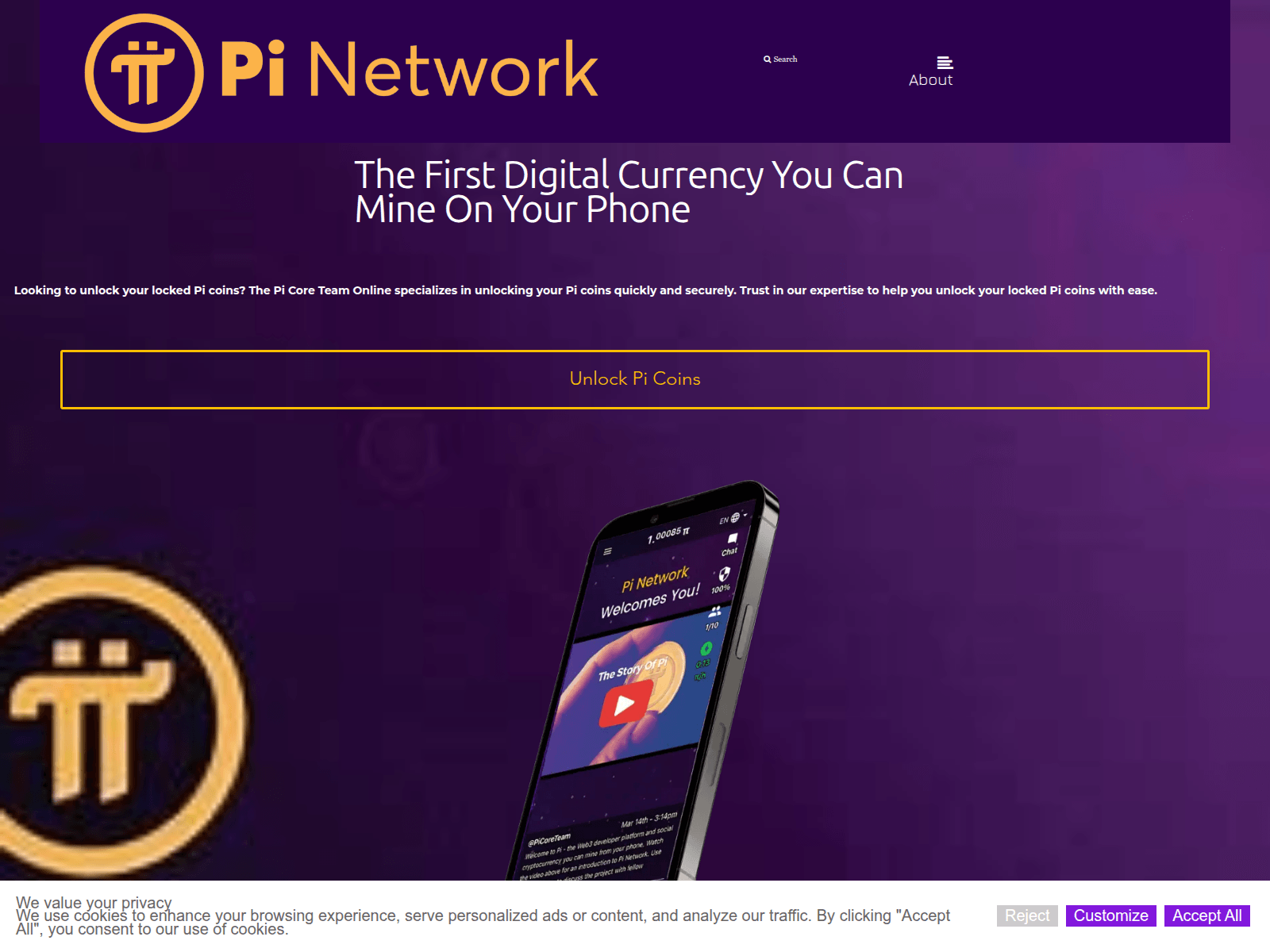 This phishing attempt works by presenting a believable page titled "Unlock Locked Pi Coins, Fast and Easy," which targets Pi Network users and developers. Visitors may be encouraged to enter login credentials or other private data that attackers could use to compromise their accounts or conduct fraud.
